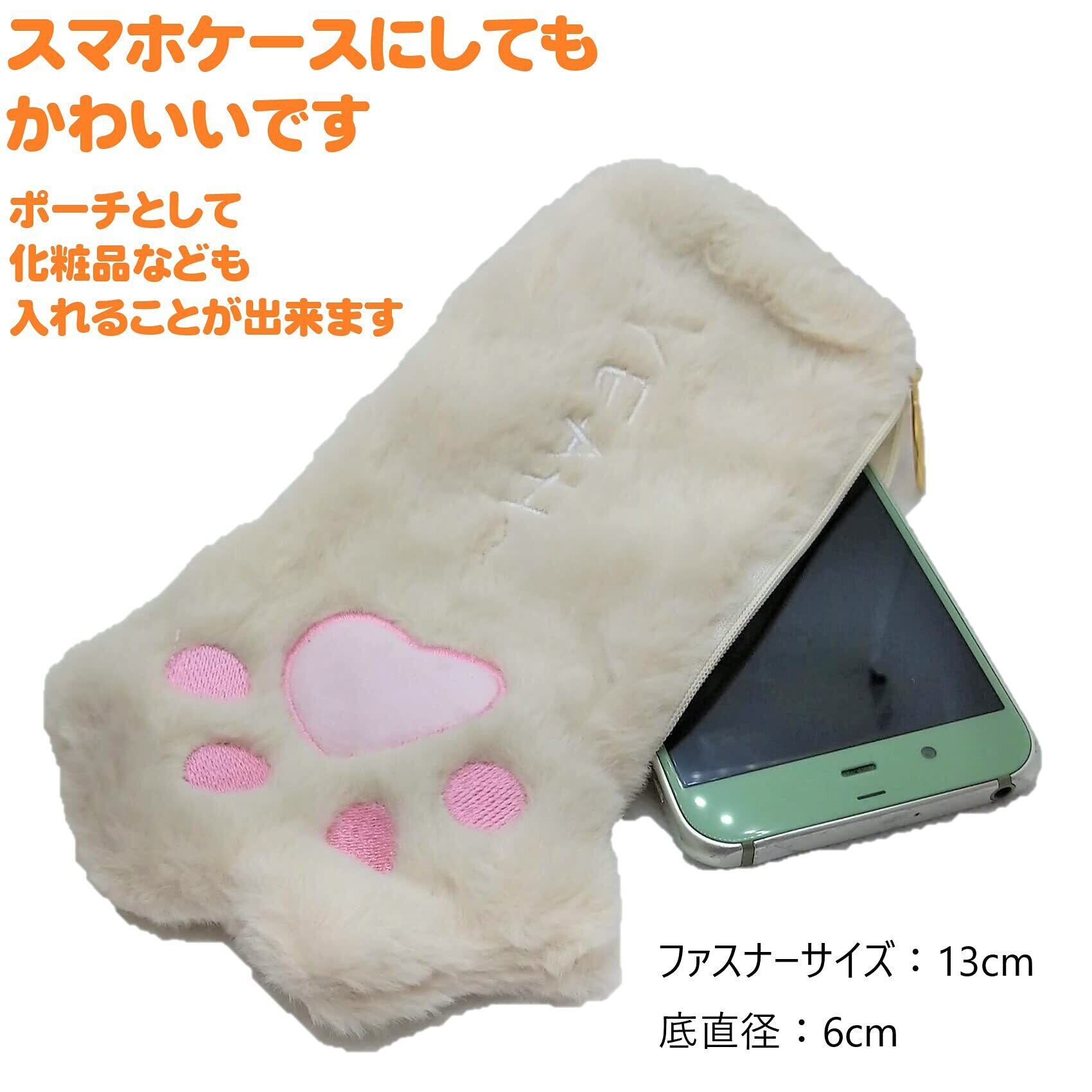 かわいい モフモフ 猫 の 手 ケース ねこ スマホケース スマートフォン ケース ペンケース 筆箱 肉球 筆 入れ 筆記用具 鉛筆 ホルダー ペン ポーチ もふもふ 気持ちいい 携帯ケース 収納 文房具 女の子 新学期 入学祝い ギフト プレゼント (ベージュ)