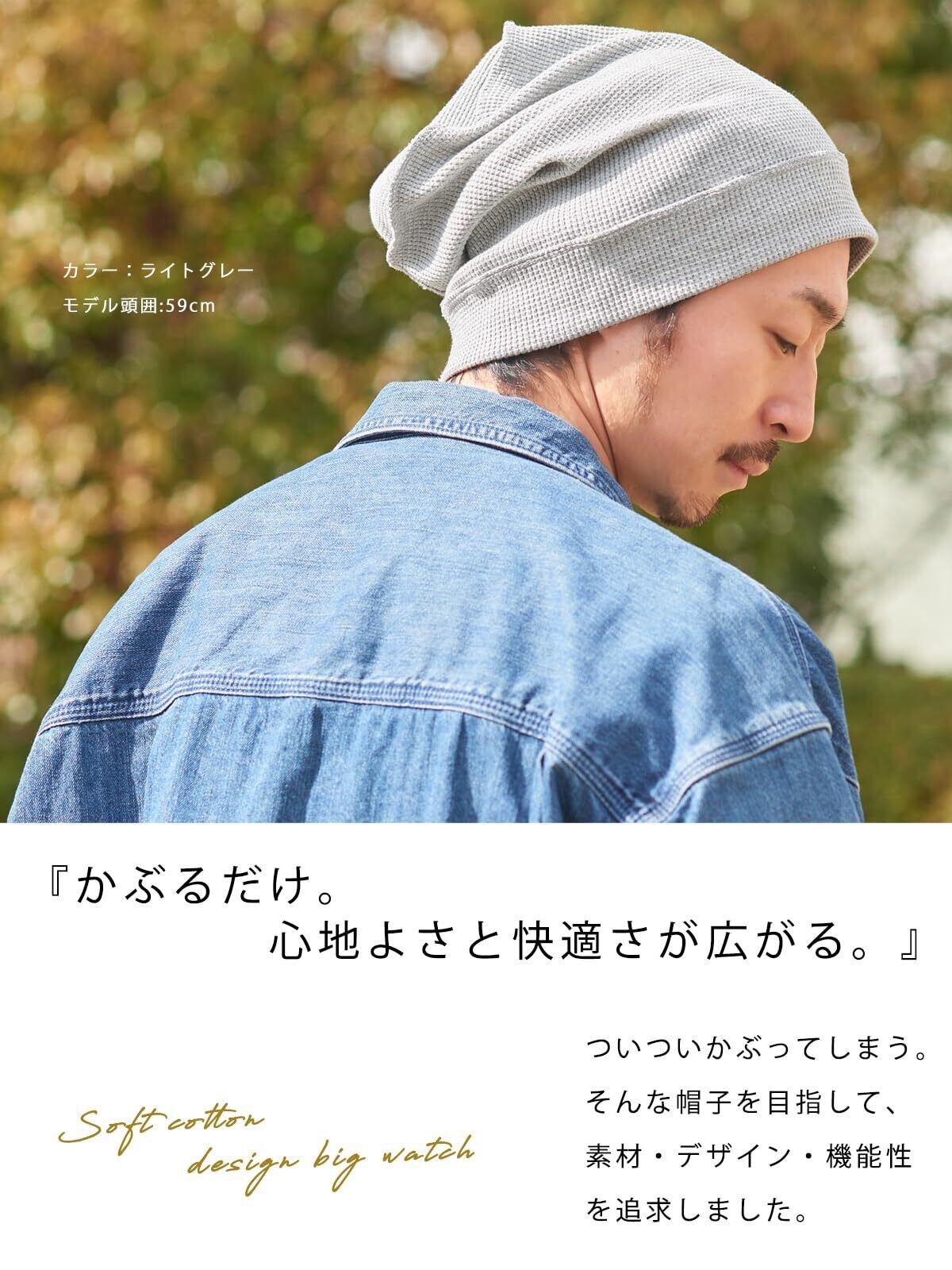 【お洒落で優しいコットン素材】綿100%のワッフル生地を使用した、サラっとした肌触りで心地よく、吸湿性にも優れた綿のニット帽。天然繊維の綿は吸湿性・保湿性に優れており快適。大きいサイズでストレッチ性もあるので、頭の大きい人もノンストレスでご使用いただけます。