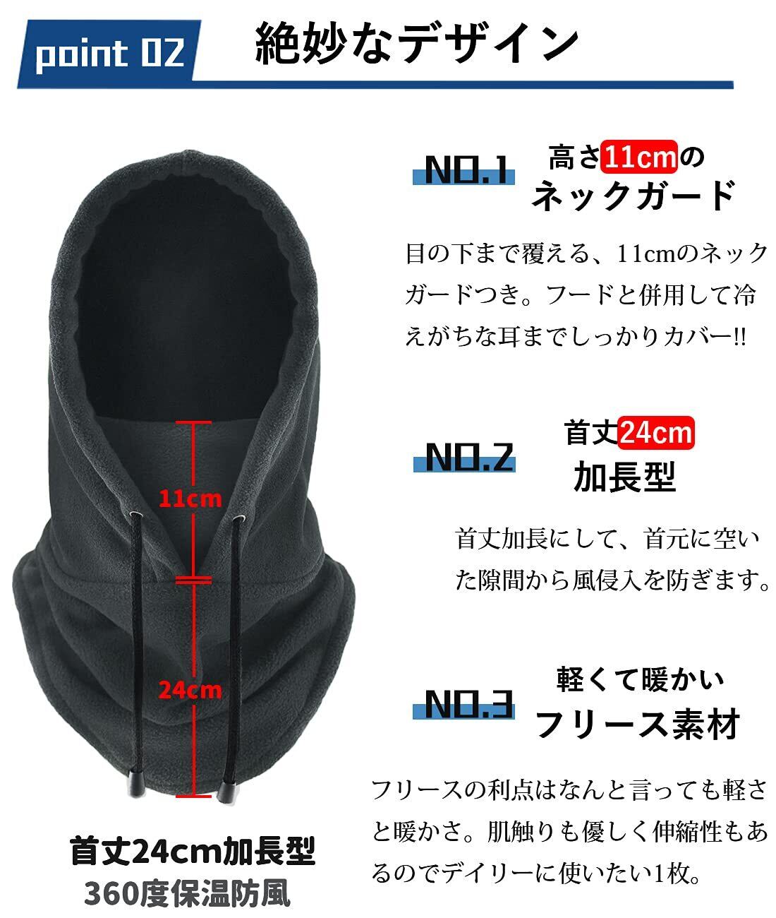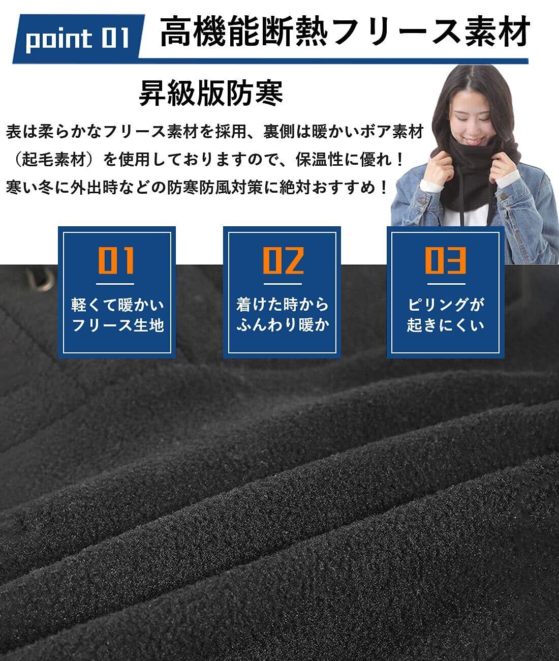 [Bafup] ネックウォーマー 帽子 ネックカバー 3Way・高機能断熱フリース素材・360度保温防風・息苦しくない 目出し帽 冬 フードウォーマー 3Way 首長タイプ アウトドア・スポーツ・スキー・バイク・自転車・通勤・通学・男女兼用
