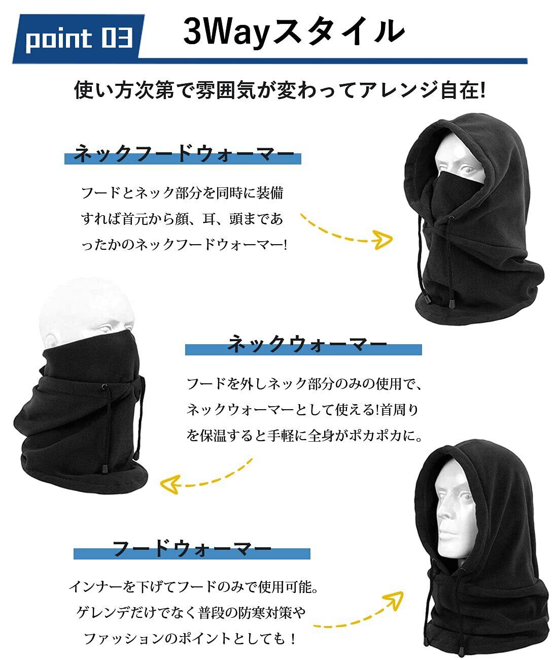 関連キーワード:[Bafup, ネックウォーマー, 帽子, ネックカバー, 3Way, 高機能, 防風, フリース, アウトドア, スポーツ, スキー, バイク, 男女兼用]