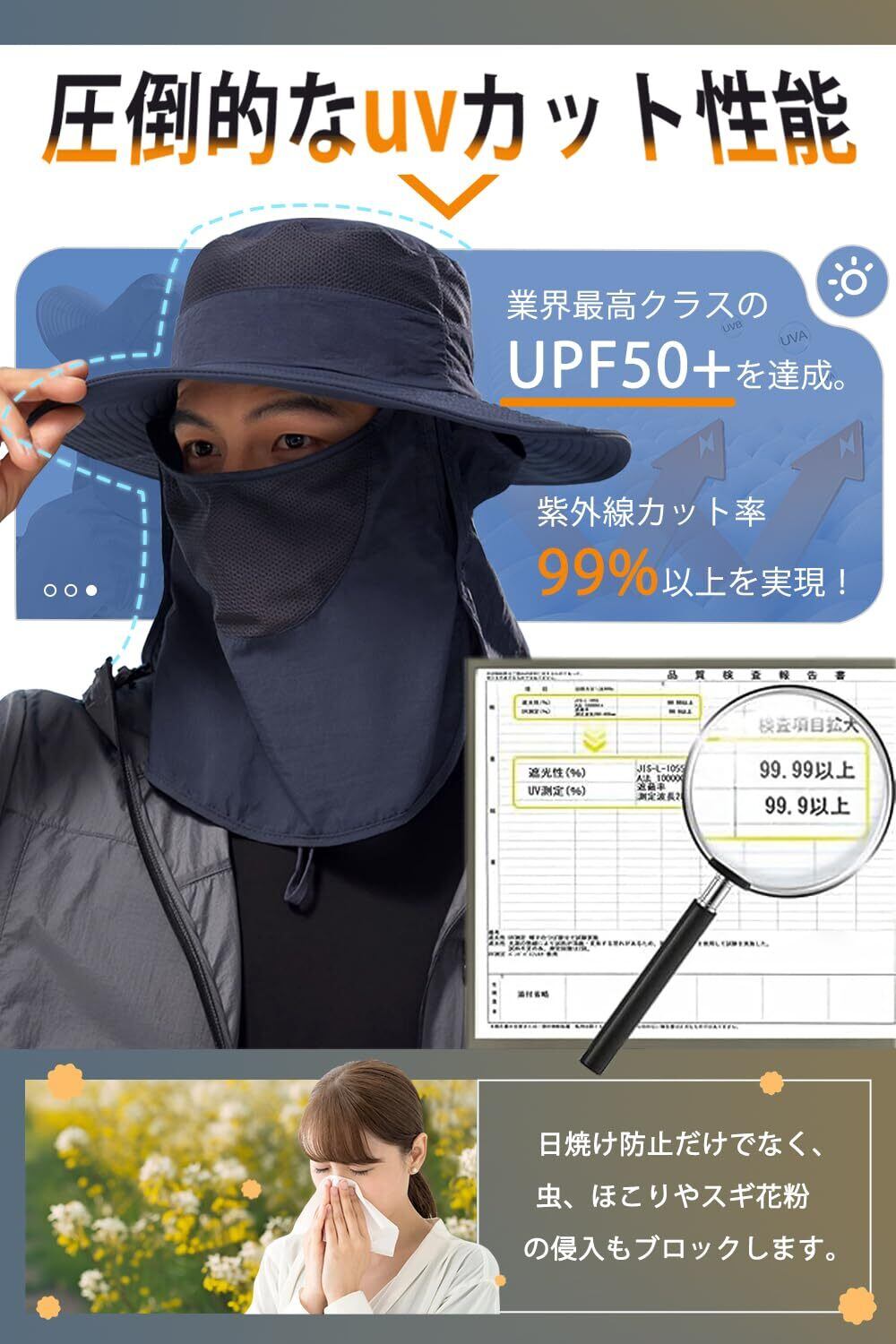 ■安心の紫外線対策!■ UPF50+の高い紫外線カット機能により、夏の強烈な日差しの中でも安心してアクティビティを楽しめます。顔や首をしっかりと守る日よけカバーも付いており、UVケアをしっかりサポートします。