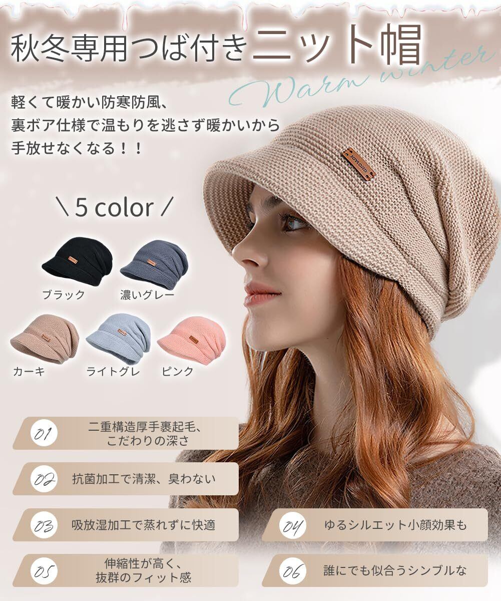 関連キーワード:[SIVAN, ニット帽, レディース, 秋冬, 防寒, 裏起毛, 小顔効果, 通気性, つば付き, ケア帽子]