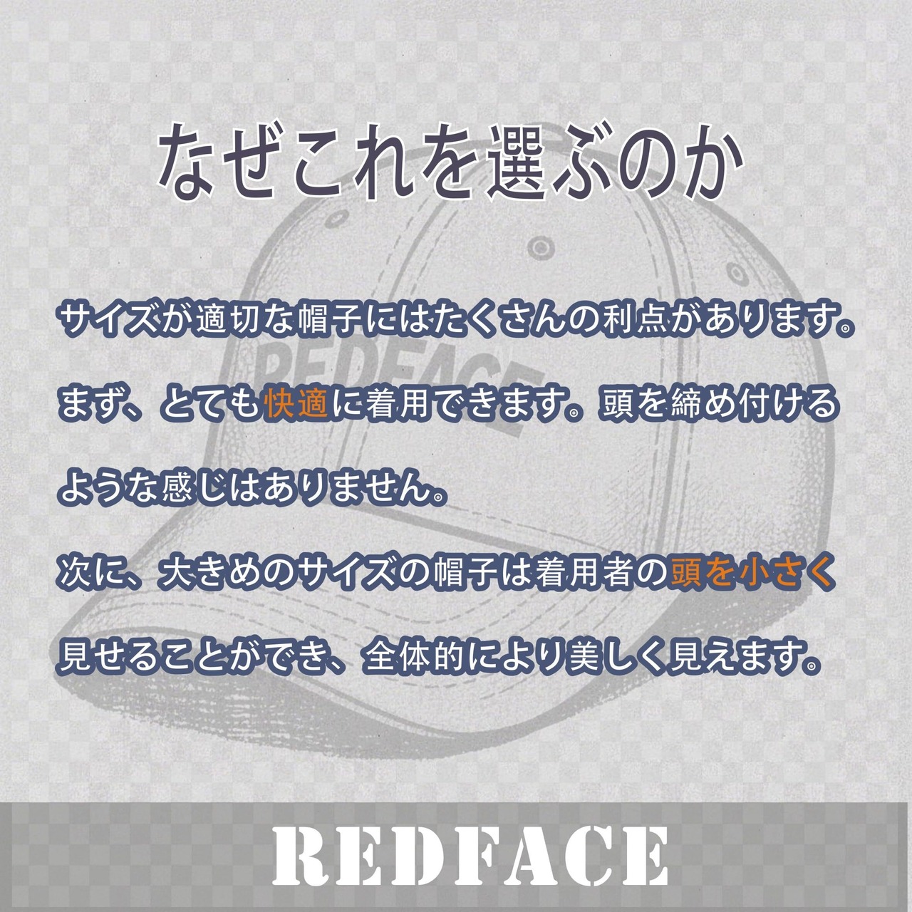 純正として販売されているredface1、【慎重に、サイズは大きいです】サイズ(cm)◆頭周り:約60~68(アジャスターで調節)、深さを増す:約10、長さを伸ばすつば幅:約6.5