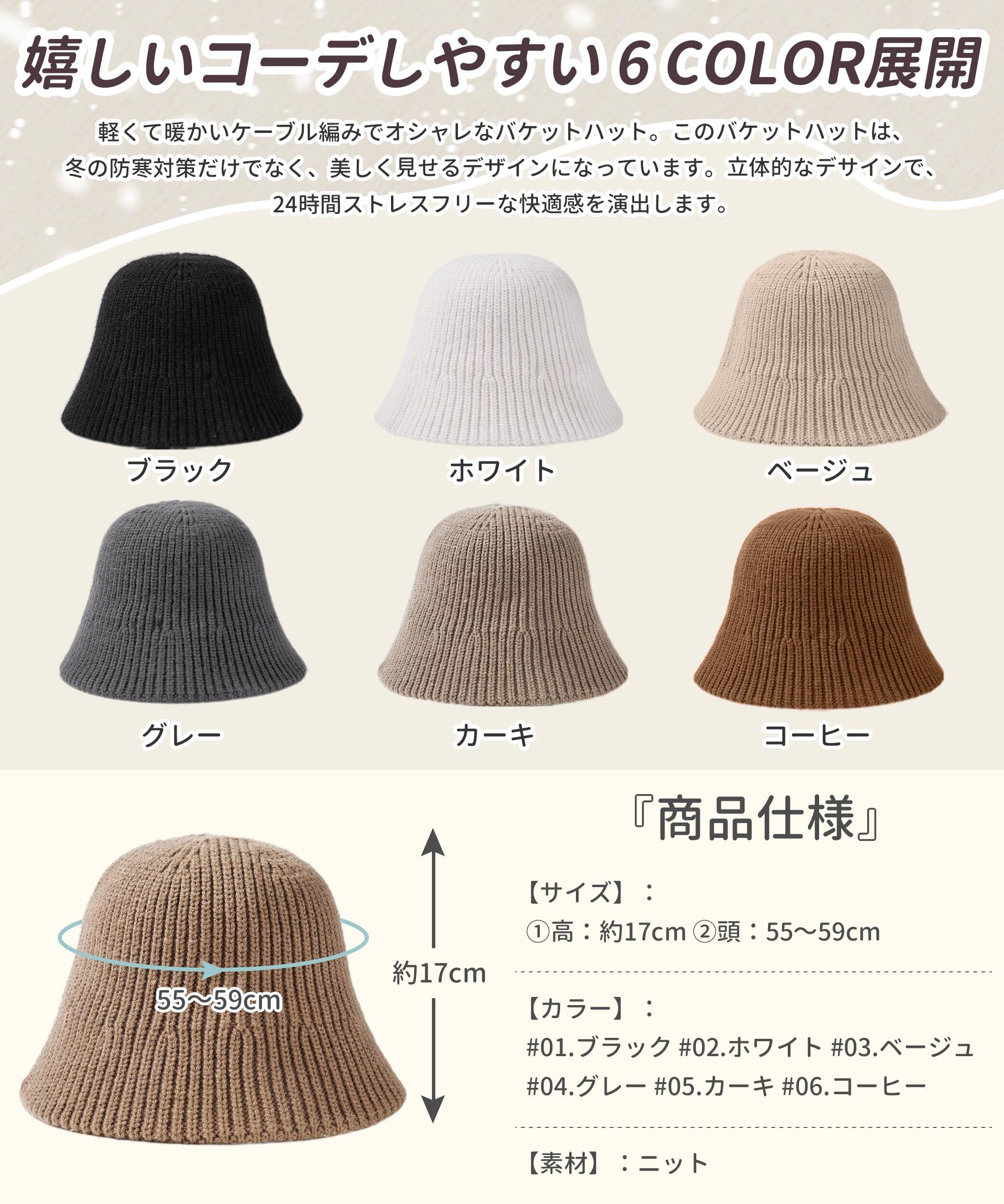 [SIVAN] 帽子 レディース バケットハット 冬 【断熱軽量素材・ 圧倒的な小顔効果・軽くて暖かいケーブル編みニット帽】 防寒 暖かい 吸汗排湿 深めタイプ 折りたたみ 締め付け感ゼロ 通気 サイズ調節 可愛い 帽子 ハット ニット帽子 秋冬用