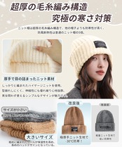 【極寒対応 零下防風・極厚の毛糸で断熱性抜群】この帽子は極厚の毛糸で編み上げられ、頭部を包み込む保温層を形成、冷気を完全に遮断し、体温を逃さず、-15℃の極寒環境下でも暖かさを持続します。帽子を被ると、頭部全体と両耳を完全に包み込み、シームレスにフィットして360°の防風防寒バリアを形成し、冷風を遮断します。さらに、帽子は柔らかくふかふかした触感で、長時間被っても締め付け感はなく、肌に優しく、かゆみや刺激を引き起こしません。この帽子は快適性と保温性を兼ね備え、被り心地が抜群です。厳冬に欠かせない保温帽子です。