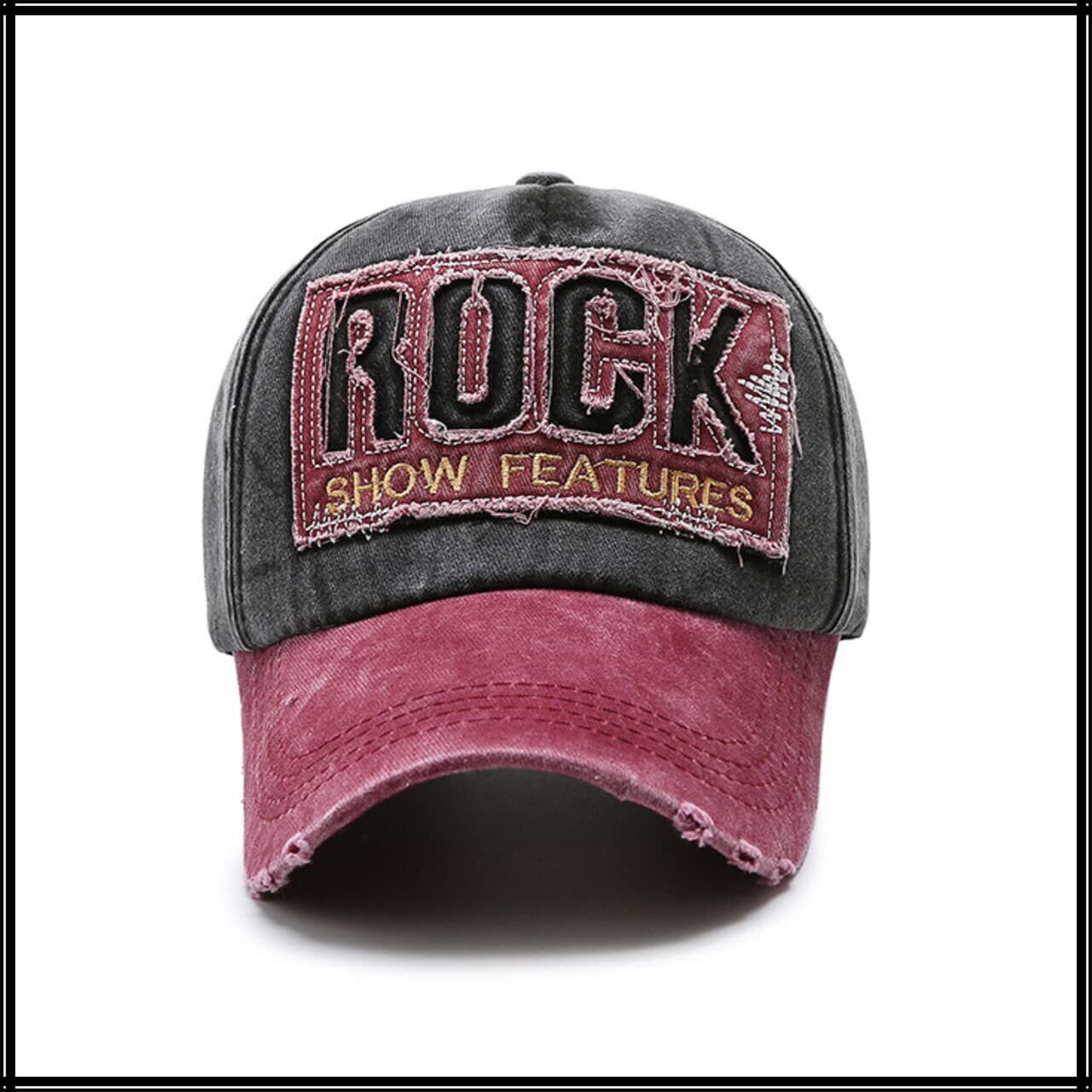 スタイリッシュな 英字 ROCK ロゴ が特徴的な メンズ カジュアル アメカジ デザイン キャップ が登場 !