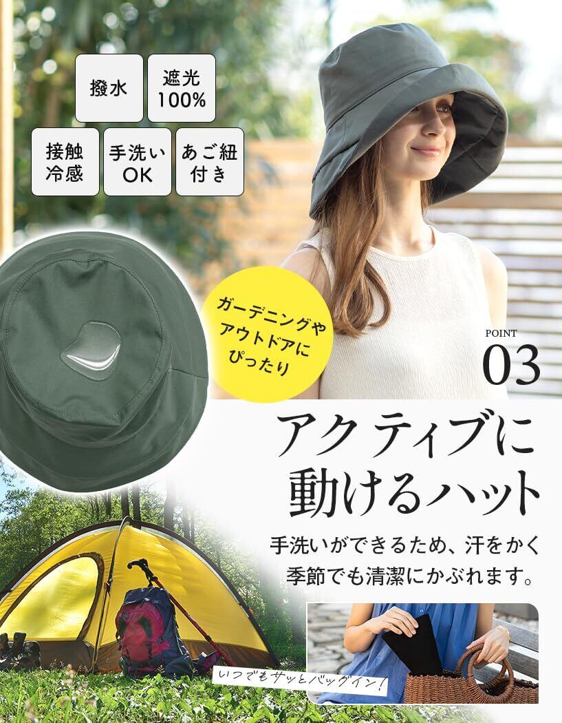 [Loo&c] [ルーアンドシー] 帽子 レディース 大きいサイズ つば広 撥水 UVシャルマンハット 遮光100% 紫外線対策 春夏 uvカット 接触冷感 あご紐付き 防水 梅雨