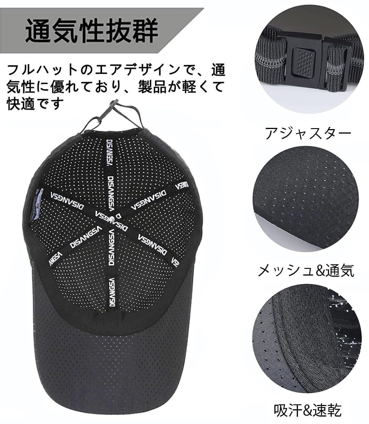 【通気性】キャップはメッシュ素材で、蒸れる心配なし、吸い上げられた汗をすばやく外気へ発散させて、通気性が抜群。着用中は帽子内の空気をよく通し、湿度の高い日本の夏の日除けに最適です!