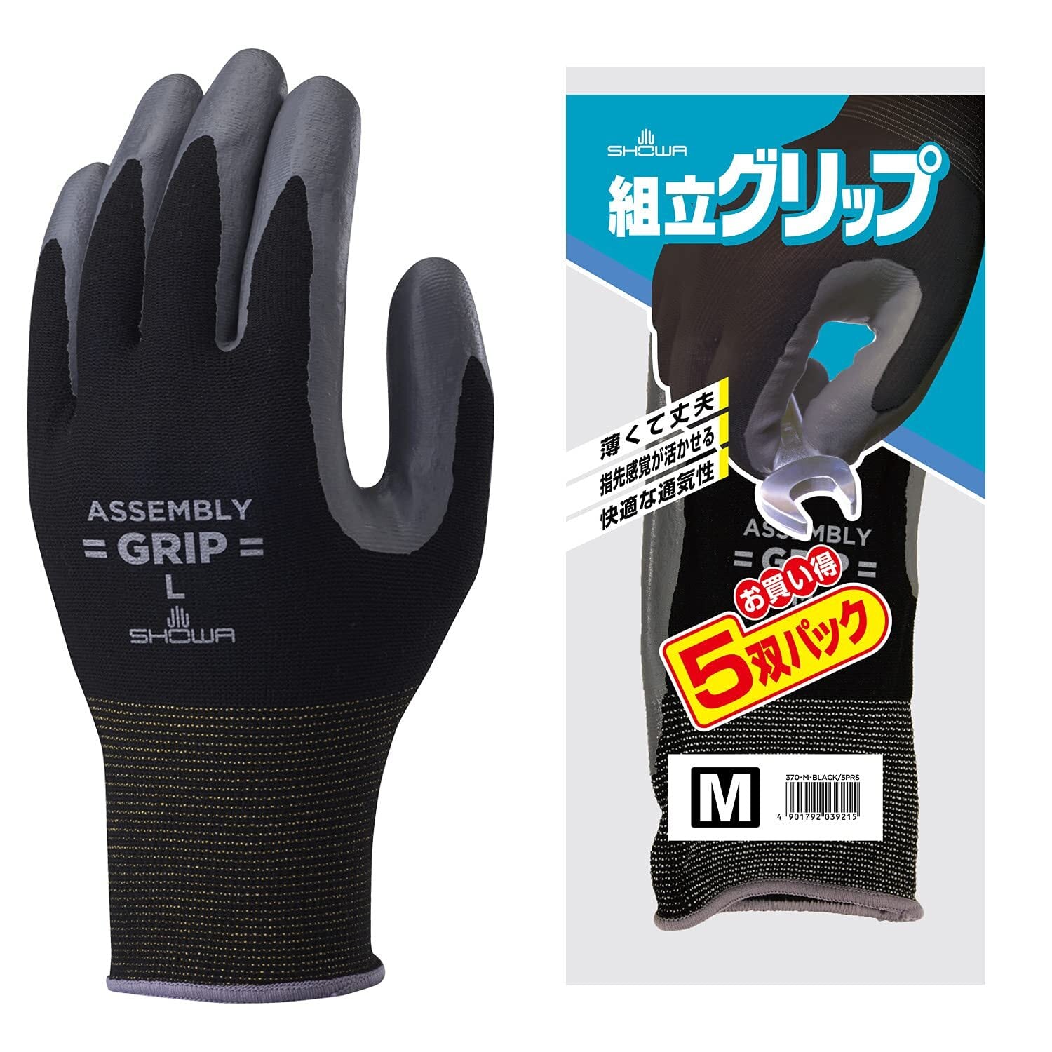 [ショーワグローブ] ニトリルゴム背抜き手袋 組立グリップ5双パック ブラック Mサイズ NO370-M5PBK