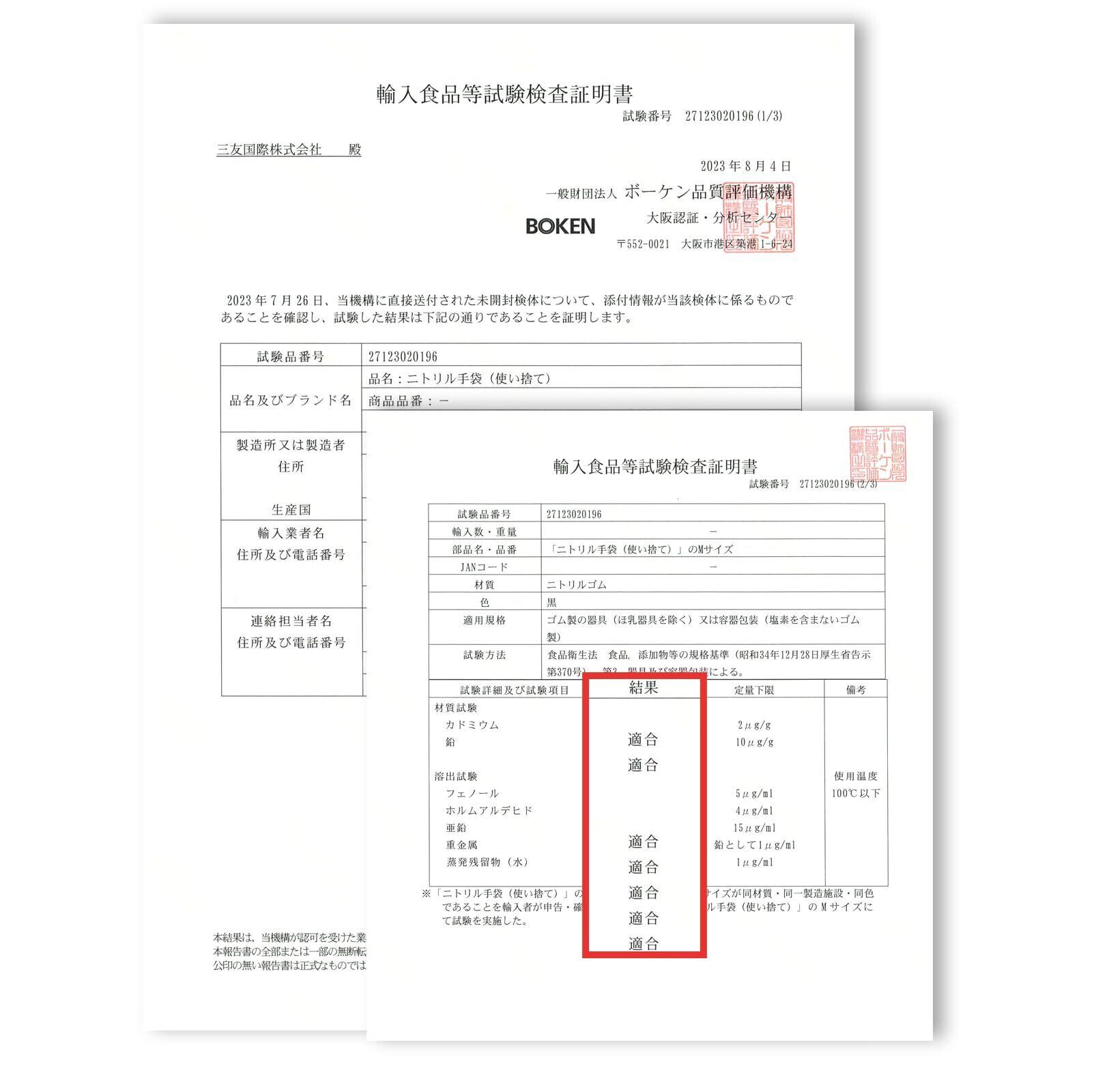 【安心・安全】食品衛生法に適合しているため料理用に最適なニトリル手袋。食品衛生法に適合しています(厚生省告知第370号)。