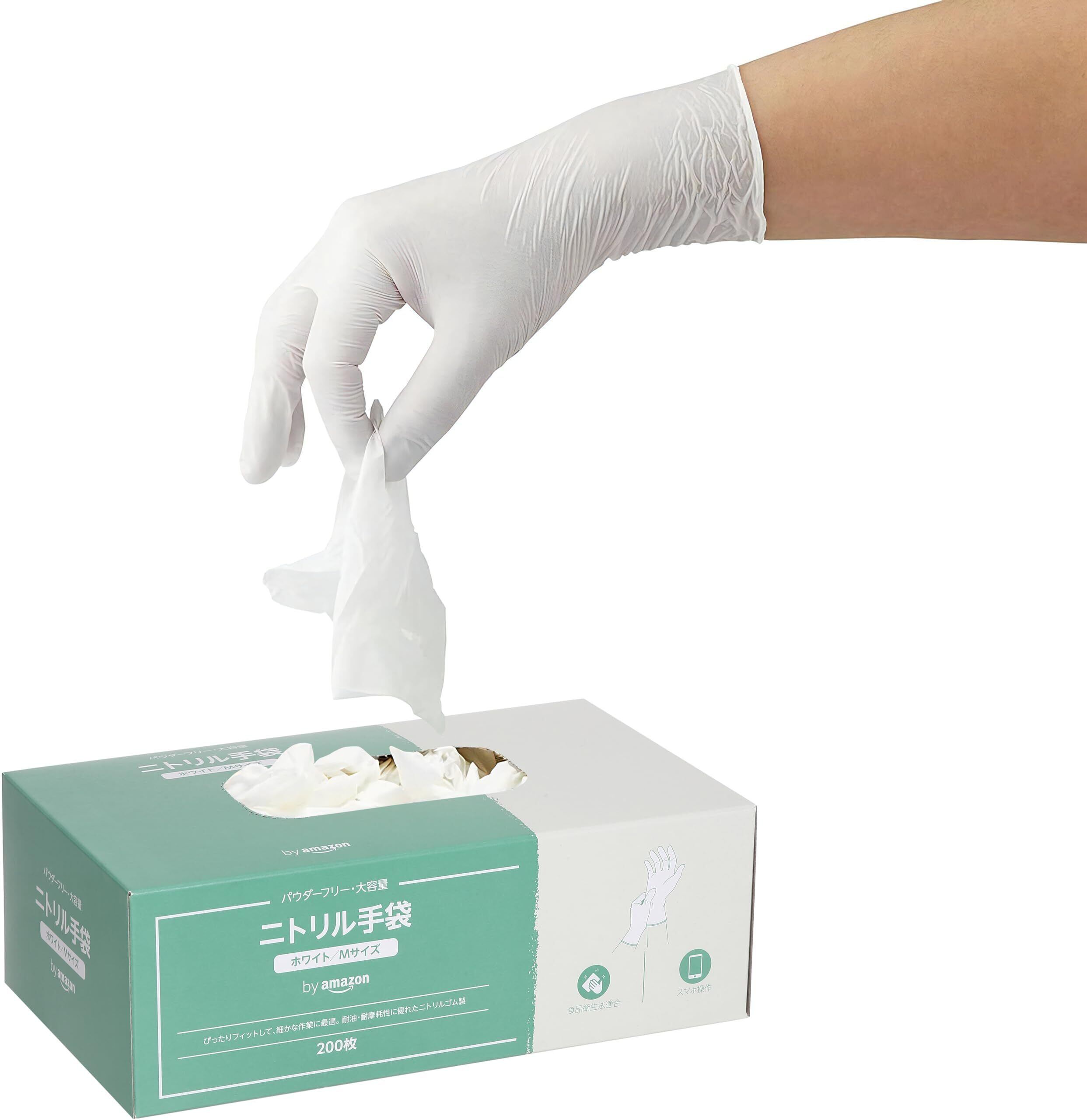 [by ] ニトリル 手袋 ホワイト パウダーフリー Mサイズ 200枚 食品衛生法適合 使い捨て グローブ