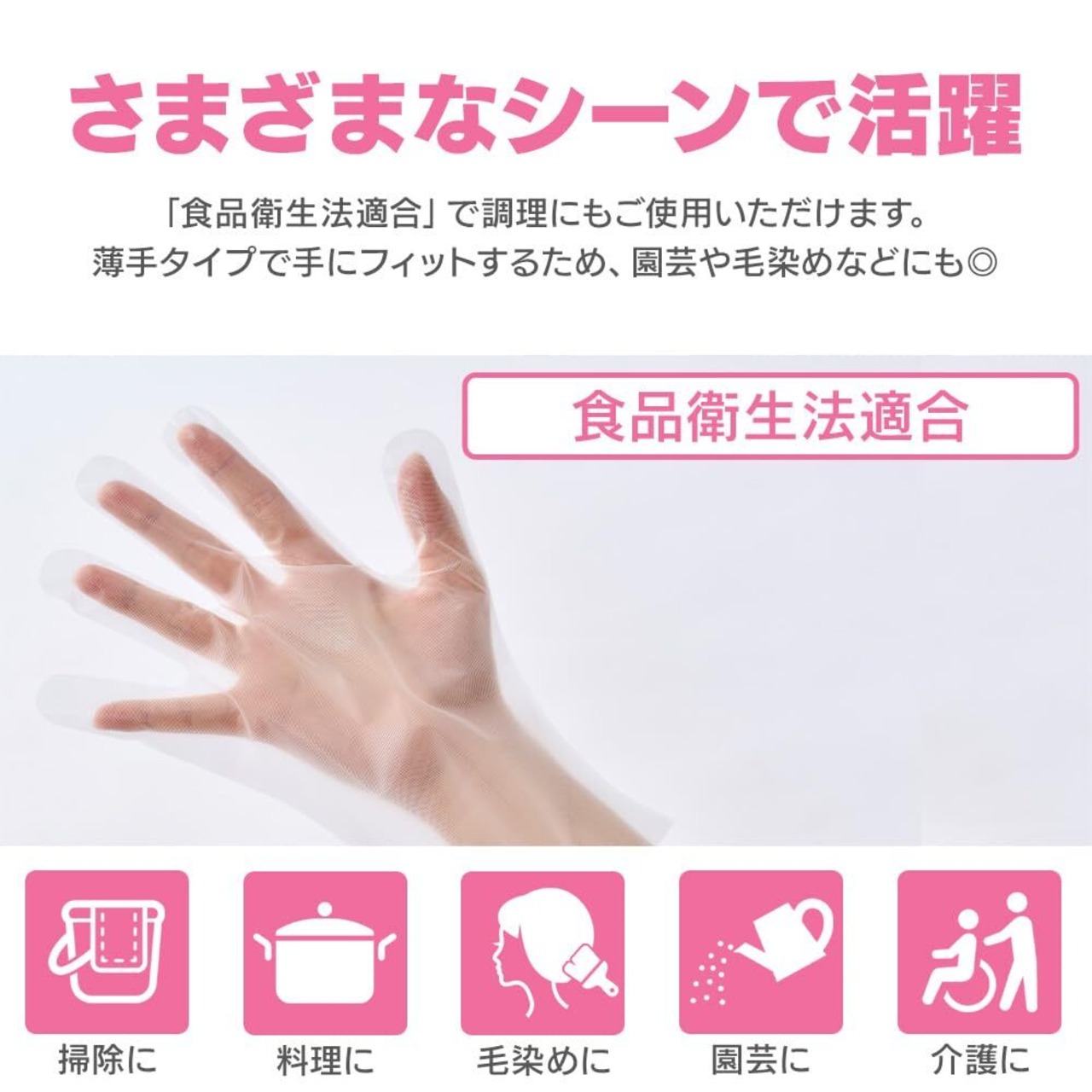 「食品衛生法適合」で調理にもご使用いただけます。ポリエチレン製のため、油、薬品、溶剤に対して耐久性があります。掃除、料理、毛染め、簡易作業、介護などにも○
