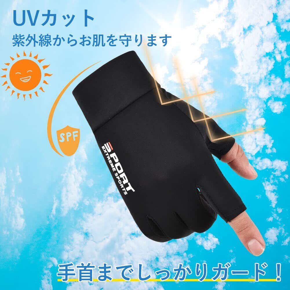 [SCOLORKI] メンズグローブ 春夏用 冷感手袋 薄手 UVカット 日焼け止め 指出し 5本切り 滑り止め スマホ操作 ストレッチ 速乾性 釣り サイクルグローブ 運転用 通勤 通学 レディース