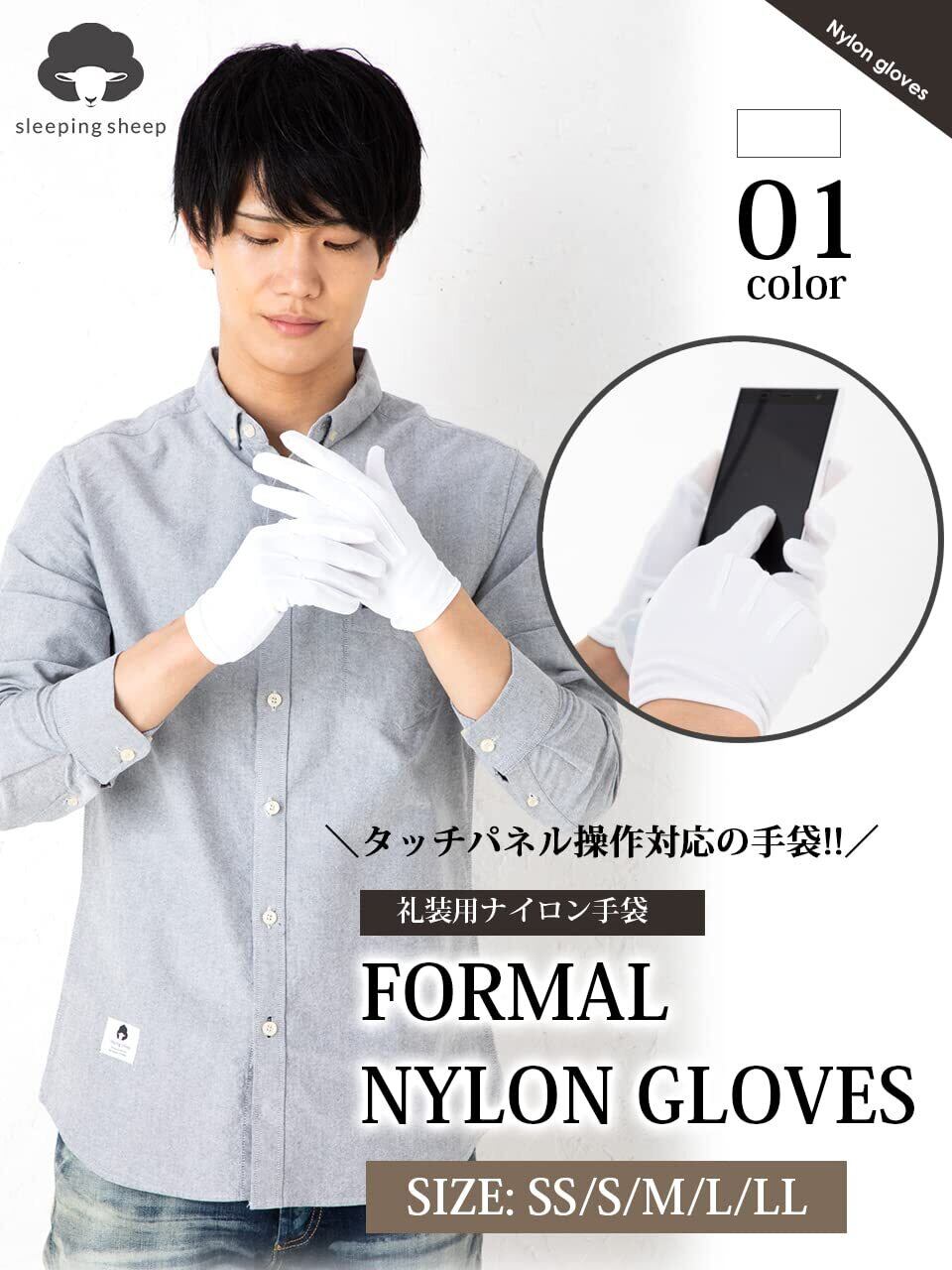 [SANDAI] スマートフォン対応 礼装 用 フォーマル メンズ 白 手袋 (S ~ LL) ナイロン グローブ