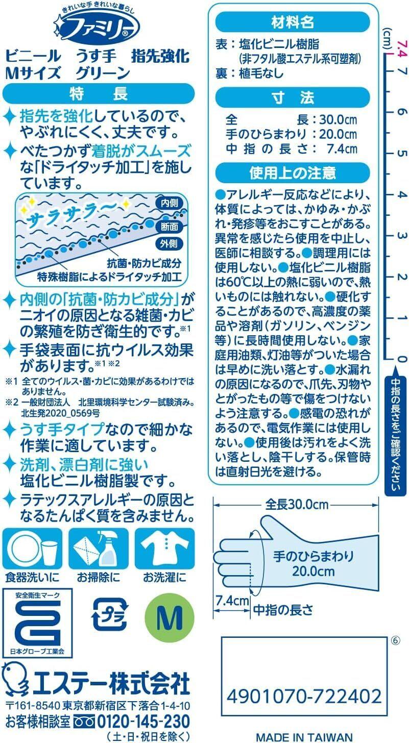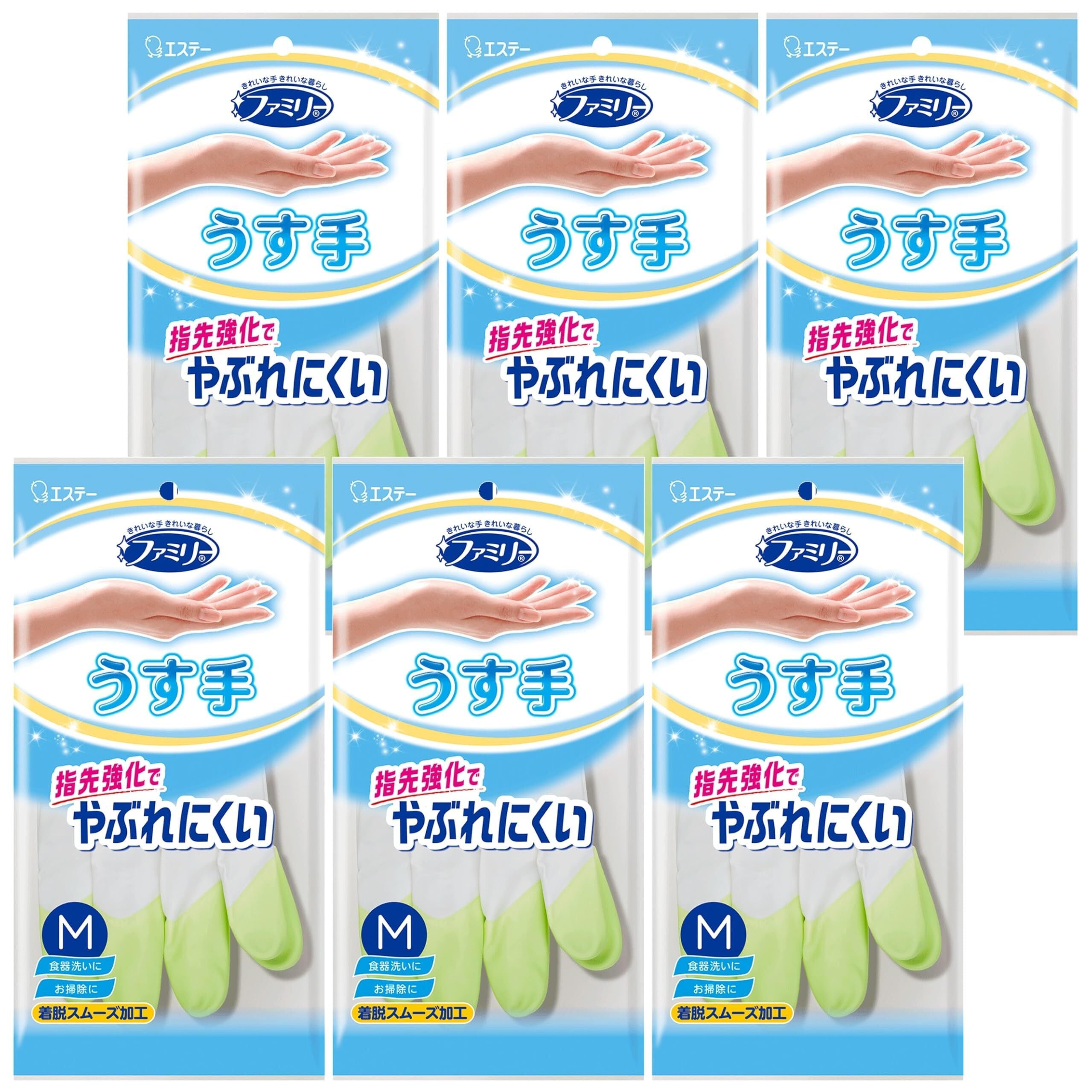 ファミリー [まとめ買い] ビニール手袋 うす手 指先強化 Mサイズ グリーン×6個 キッチン 食器洗い 掃除 洗濯 ビニール 手袋