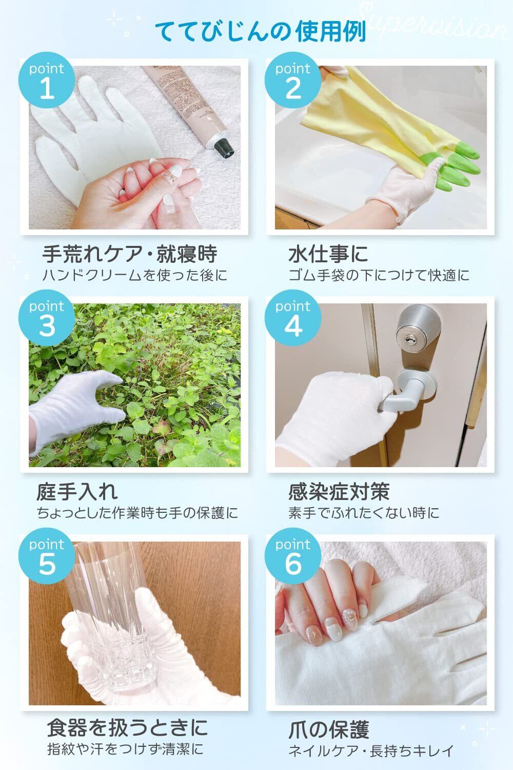 ◆【美容皮膚科の看護師監修】 綿手袋 より優しい 手荒れ 手袋 保湿手袋 白手袋 就寝 ナイト手袋 4組8枚 Mサイズ レディース 子供 ててびじん kitolala (4, M)◆