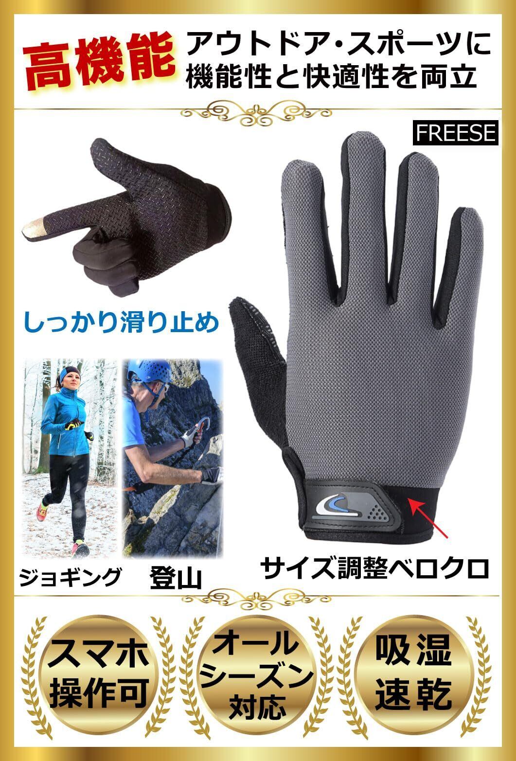 [FREESE] 手袋 グローブ アウトドア 登山 メッシュ スマホ対応 滑り止め ケガ防止 UVカット 吸湿速乾 伸縮