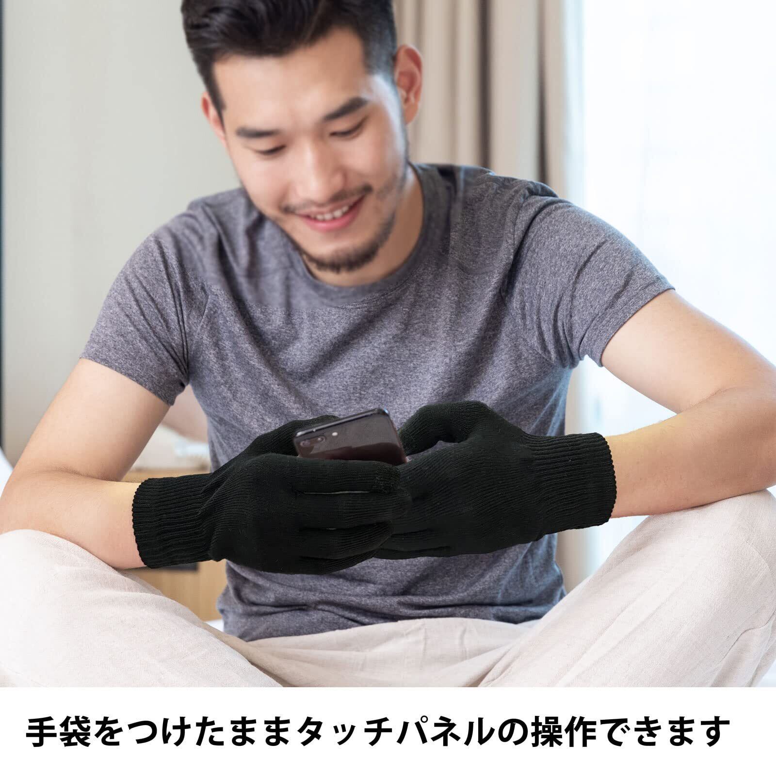 【スマホ対応で便利な設計!】指先の部分に特殊な素材を使用しているため、手袋を着けたままでもスマートフォンの操作が可能です。夜のお供として、簡単にメッセージの確認やアプリの使用ができるのが嬉しいポイントです。