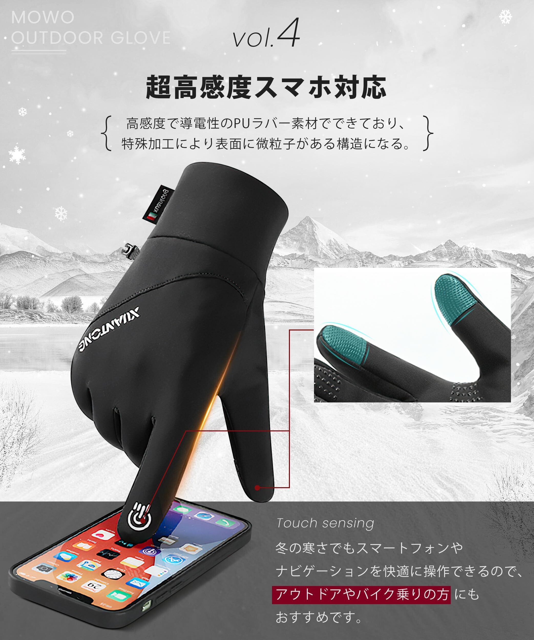 [MOWO] 手袋 メンズ 防寒グローブ 【裏起毛で急速昇温・滑り止め加工・超高感度スマホ対応】防寒手袋 バイクグローブ 冬 滑り止め 防風 厚手 人間工学 タッチパネル対応 撥水加工 紛失防止結び付け 暖かい スポーツ スキー 通勤 通学 作業