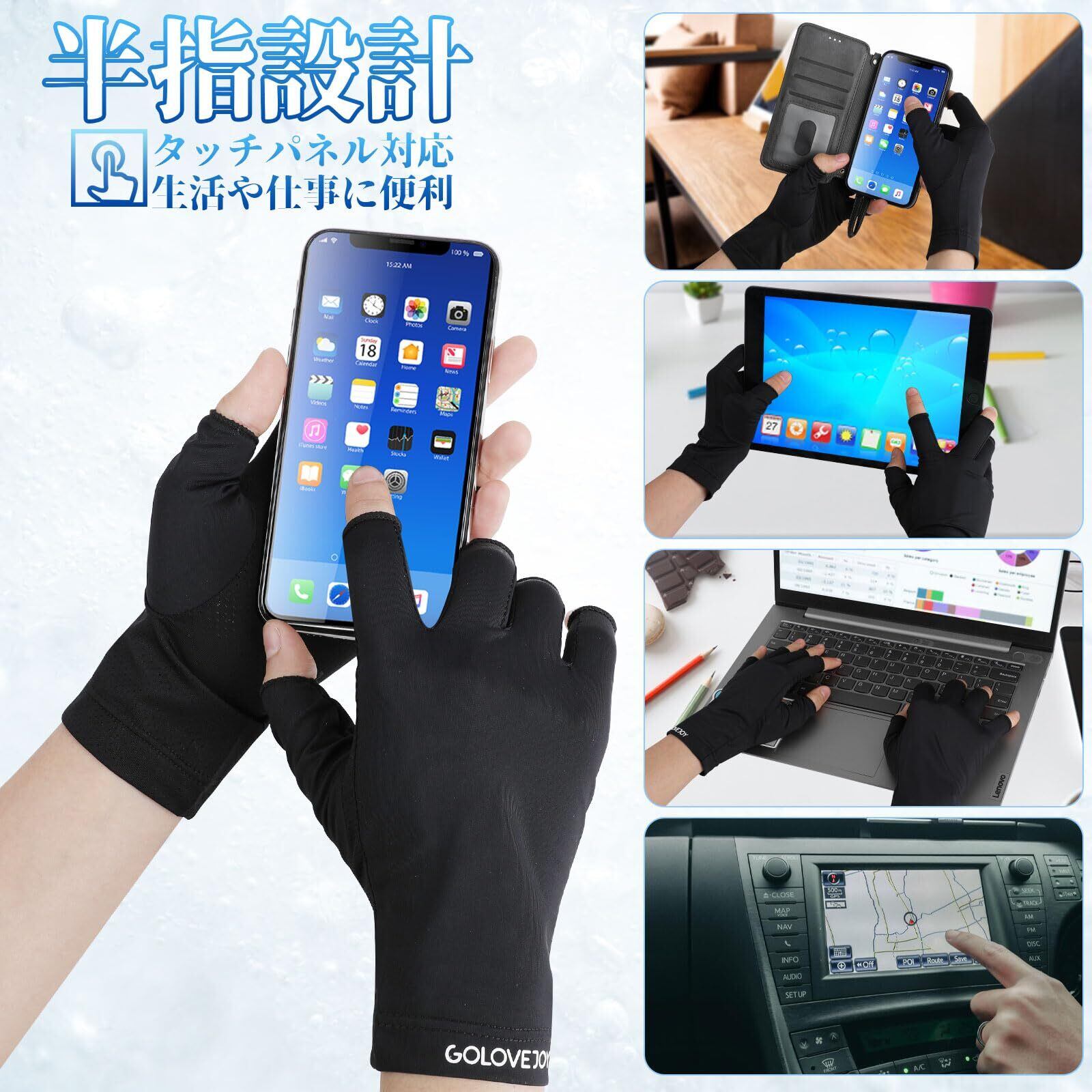 [CINECE] UVカット手袋 日焼け防止 UPF50+ 指切タイプ 接触冷感 紫外線対策 スマホ操作 薄手 通気性 速乾性 通勤 通学 運転