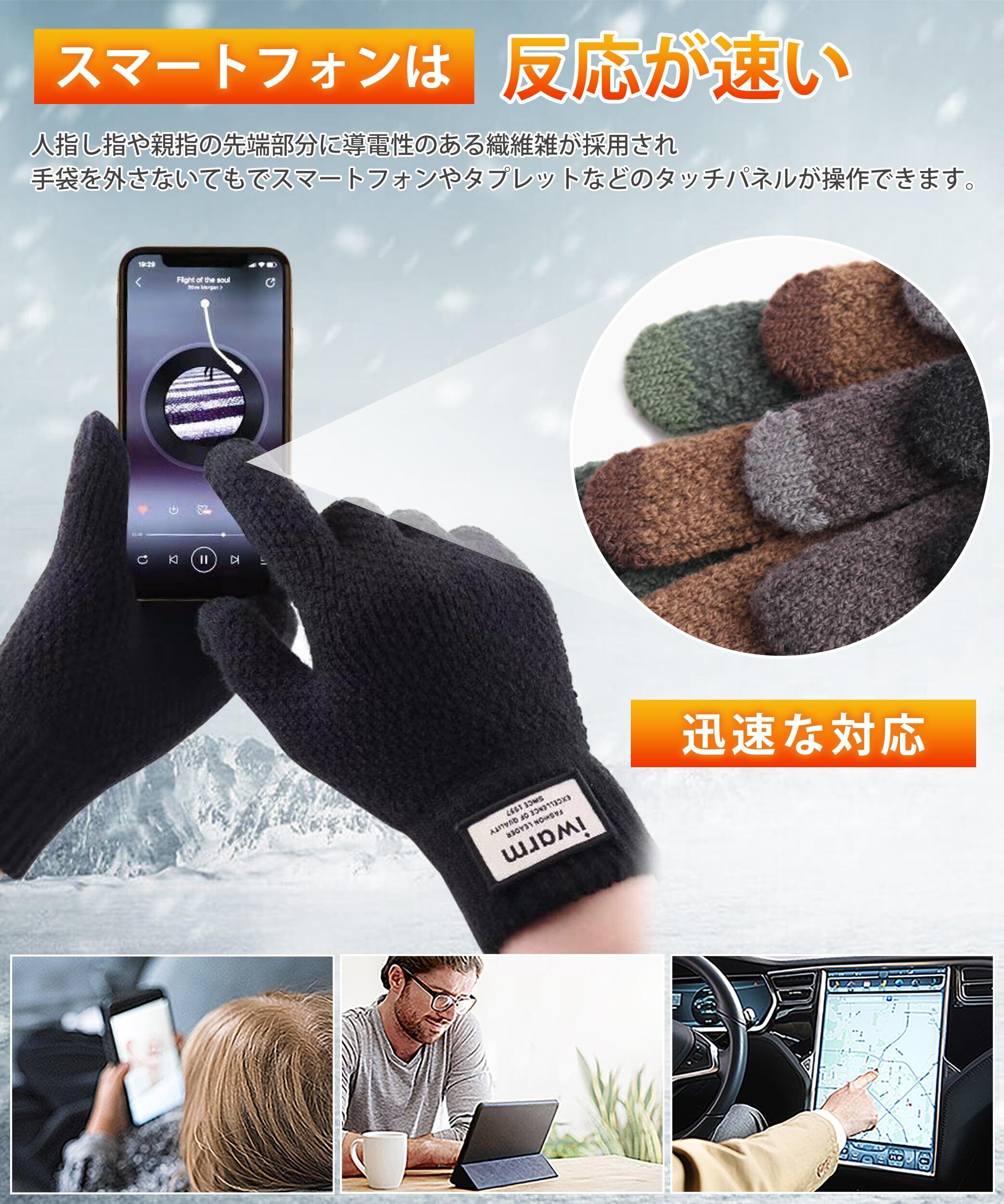 [HORADON] 手袋 メンズ 防寒 ニット手袋 冬 【暖炉のように温かい・スマホ対応・極厚裏起毛・瞬間で5℃上昇】 厚手 防寒 グローブ 暖かい 保温 ファション ニットグローブ 人間工学 柔らか 伸縮性 バイク サイクリング 通勤 通学 男女兼用