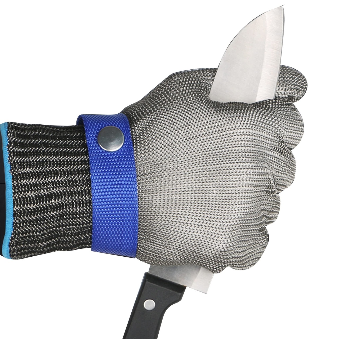 【ステンレス手袋+綿手袋】刃物、金属、ガラス、プレス、電動のこぎりなど鋭利な器物から手を守る、伸縮性、通気性が抜群。左右両手にフィット、100%ステンレスワイヤー (ステンレス鋼製)替刃、滑り止め、切れないチェンソー手袋。新しい5本の指、それぞれ1本のステンレス製手袋と1本の白い綿手袋。