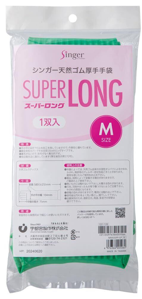 ◆[宇都宮製作] シンガー天然ゴム厚手手袋 スーパーロング(1双) M◆