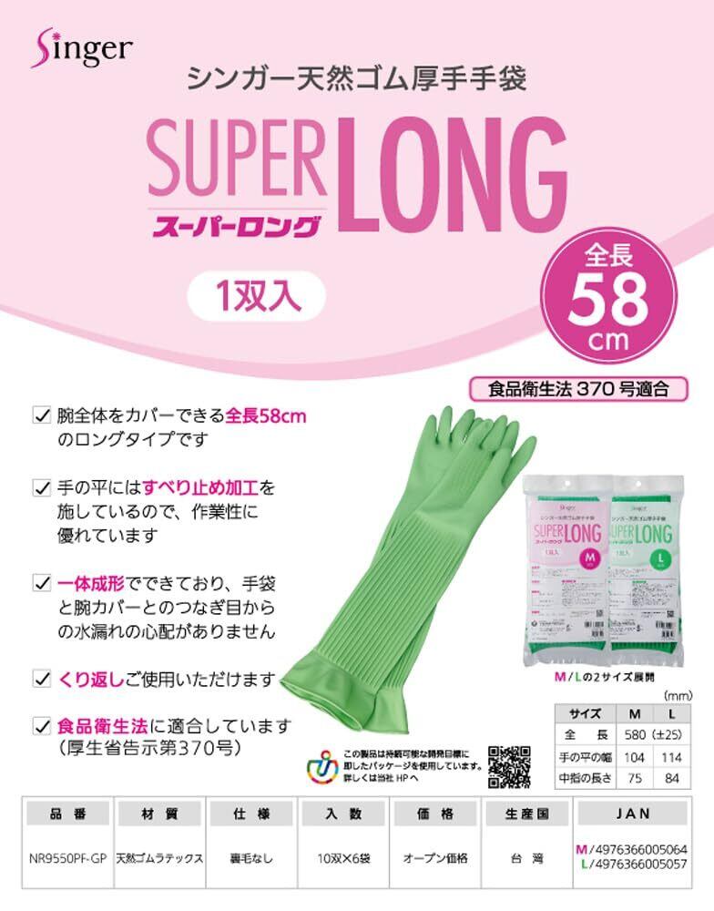 [宇都宮製作] シンガー天然ゴム厚手手袋 スーパーロング(1双) M