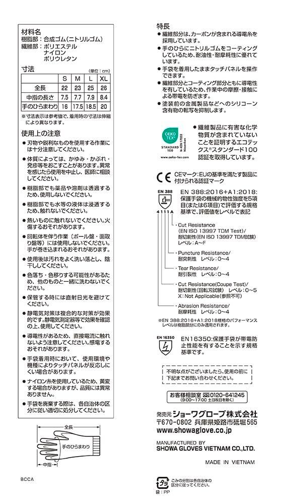【帯電防止機能で安心!】この手袋は、静電気の発生を抑える帯電防止機能付きです。エレクトロニクス関連の作業やクリーンルームでの使用においても、安心してご利用いただけます。手元を安全に保ちながら、しっかりとした作業が可能です。