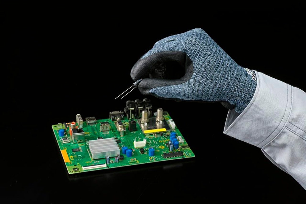 【静電気対策手袋】繊維部分にはカーボンが含まれる導電糸を採用し、作業中の摩擦・接触による帯電を防ぎます。