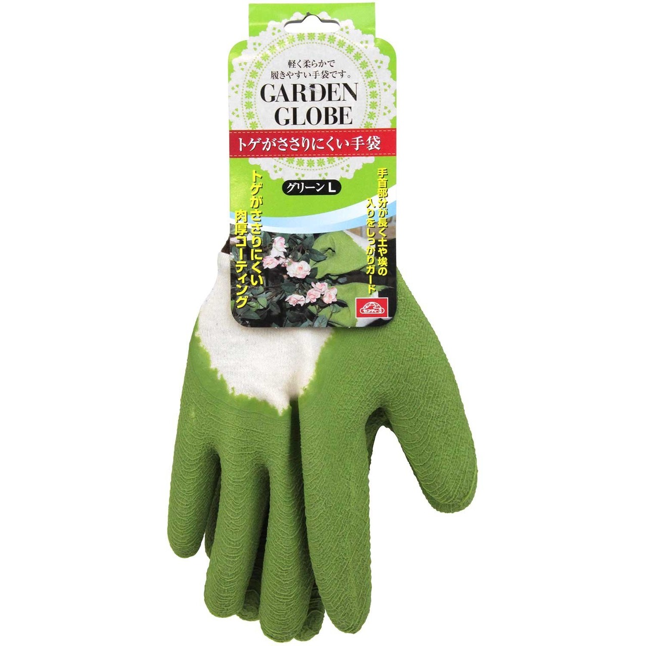 特徴:トゲがささりにくい肉厚コーティングでハードな園芸作業、バラの手入れに最適