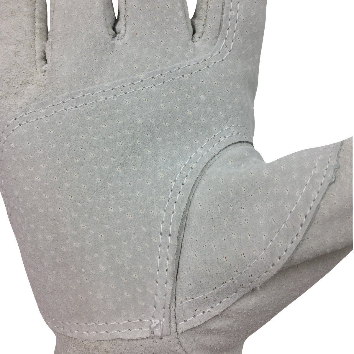 豚床革製、スエードマジックタイプ。すぐれた通気性とジャストフィットサイズを実現。用途:建設、土木、鉄鋼、機械、造船などの重作業。製品寸法:全長 約21.5cm 手の平まわり 約20.5cm 中指 約8.0cm