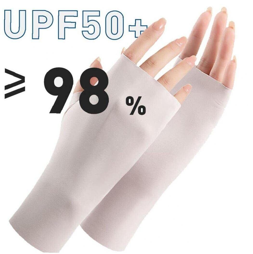 [Dinntty] 手袋 日焼け止め Uvカット アイスシルク 通気性 半指ミトン 指なし 夏用 グローブ 女性用 ベージュ