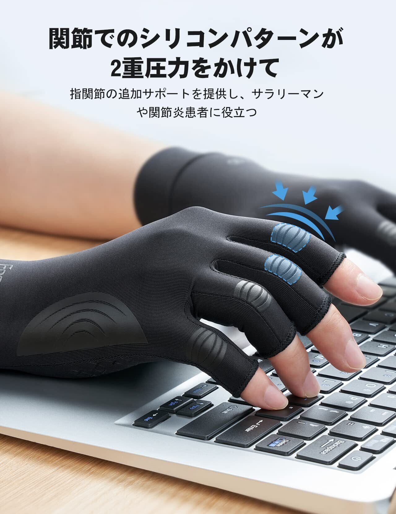【関節でのシリコンパターンが2重圧力をかけて】手の関節部分への追加圧力が業界初創です!指関節および手側のシリコンスパターンは圧力ポイントに焦点を合わせ、指関節の追加サポートを提供し、すべての指関節がはっきりと収縮圧を感じした。長期間を使用するなら関節問題を避けることができます。