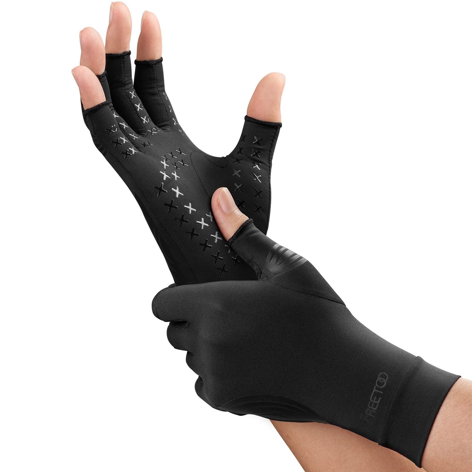 [FREETOO] 指サポーター 関節固定 着圧手袋 防臭抗菌 吸汗速乾 軽量 薄い手袋 滑り止め 仕事 家事 育児 パソコン/スマホ操作 スポーツ 男女兼用 ゲーミング手袋 ブラック Lサイズ