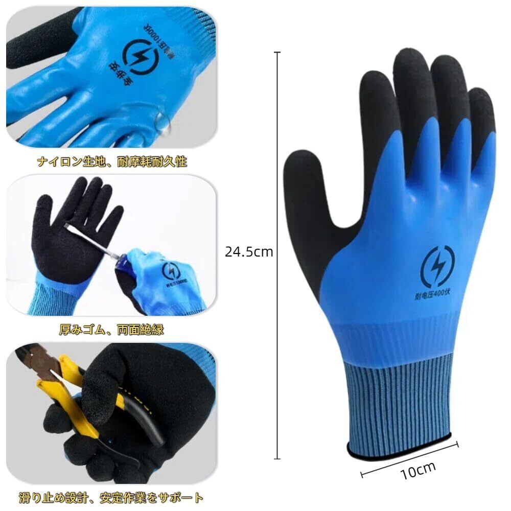 [Jravezt] 絶縁手袋 1000V 電工手袋 安全な作業 溶接 配線 耐電圧性 滑り止め 耐摩耗防水 ゴム製 ゴム手袋 電気絶縁 DIY 電気工事用