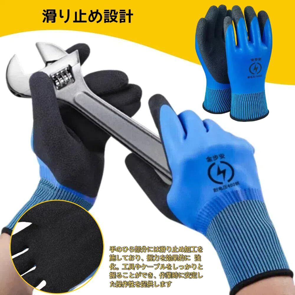■耐電圧性と多機能性を両立■ 本手袋は優れた耐電圧性を持ち、電気工事やDIYの際に手をしっかりと保護します。滑り止め機能を備えたグリップ素材は、湿潤環境でもしっかりした握り心地を提供し、作業効率を向上させます。