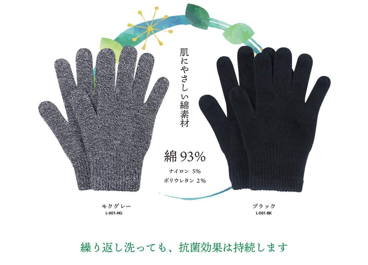 ◆福徳産業 綿手袋 抗菌 ブラック フリーサイズ 1双入 日常用 肌にやさしい 綿素材 天然有機系デオドラント加工 日本製 ロンフレッシュ L-001-BK◆