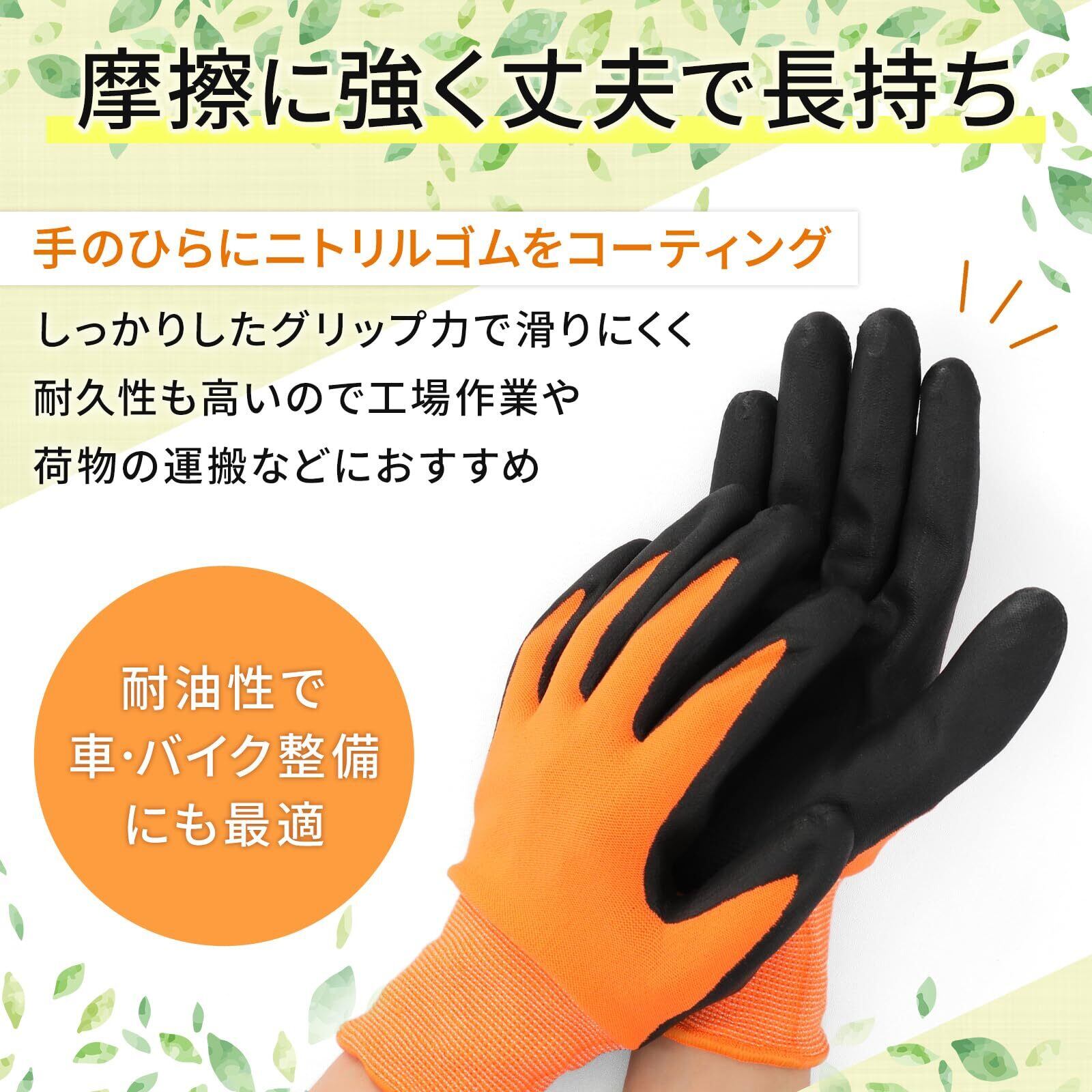 【摩擦に強く丈夫で長持ち】手のひらにニトリルゴムをコーティング。しっかりとしたグリップ力で滑りにくく、耐久性も高いので、荷物の運搬や農作業で大活躍。