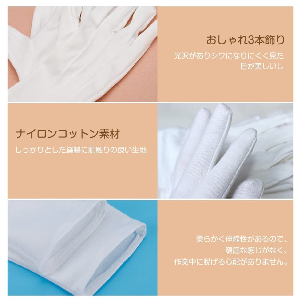 【多岐にわたる用途に最適】このフォーマル手袋は、結婚式やパーティーだけでなく、検品や警備業務など、さまざまなシーンで活躍します。手元を美しく演出し、礼儀正しさや品格をアップさせるアイテムとして、おすすめです。
