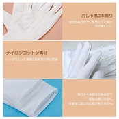 光沢が美しいナイロンコットン製で、冠婚葬祭だけでなく、式典やモーニングなどを着る際に必要な礼装用手袋として、接客業、警備員、警察、運転手など見た目の美しさが求められるご用途に適し、手に持っているだけでも素敵です。