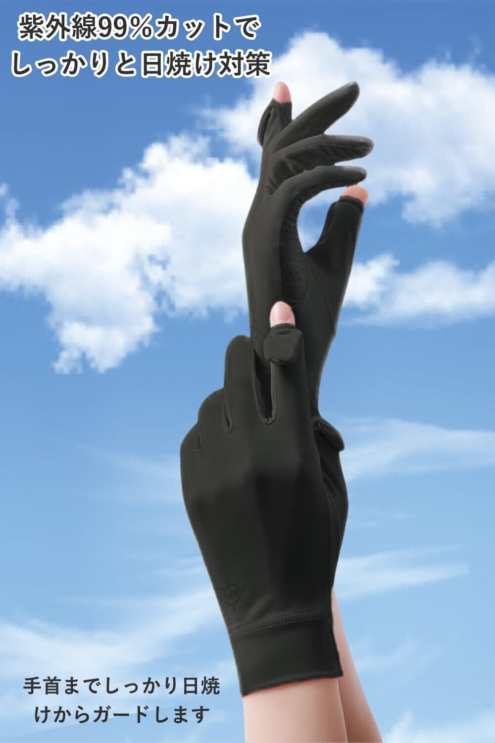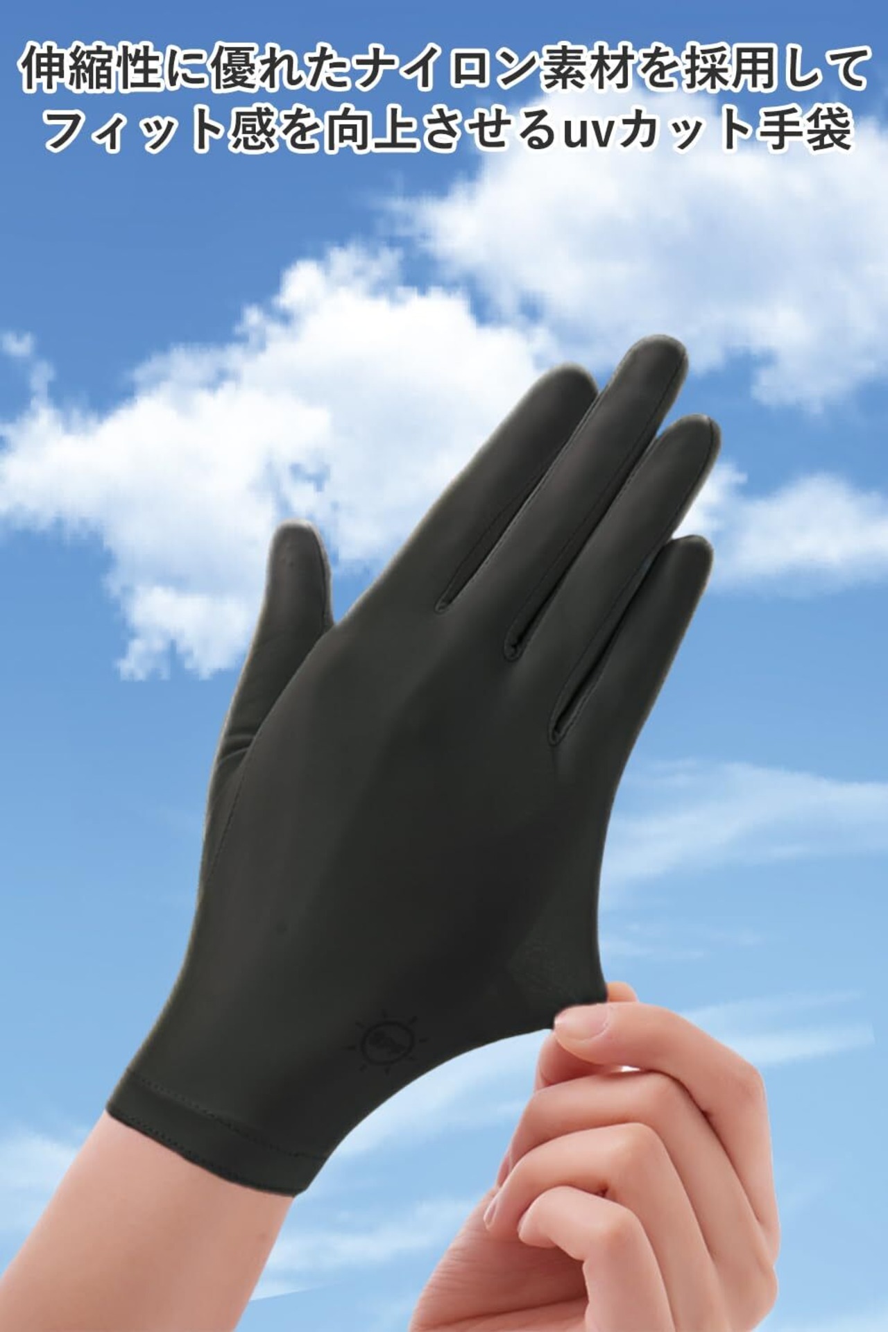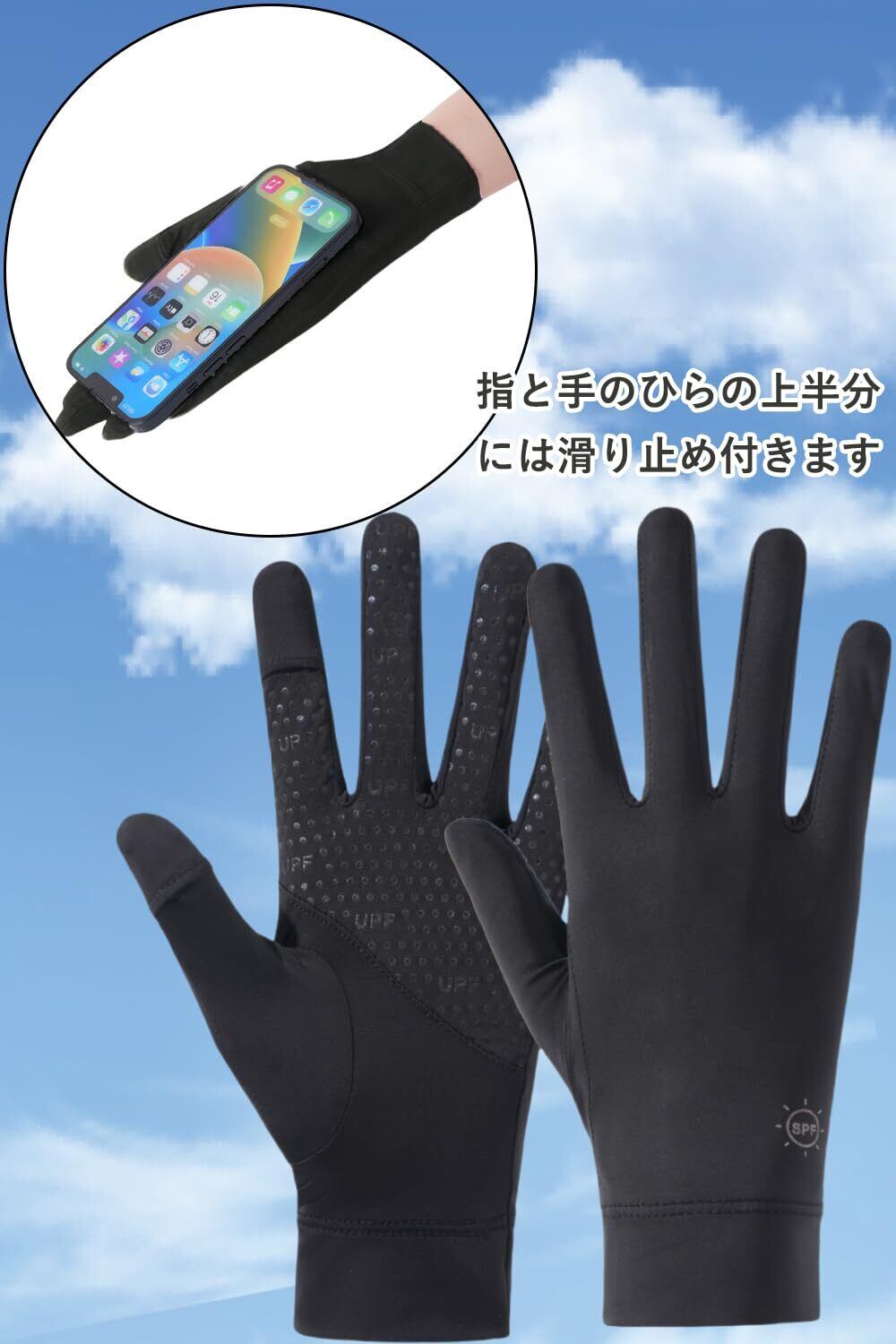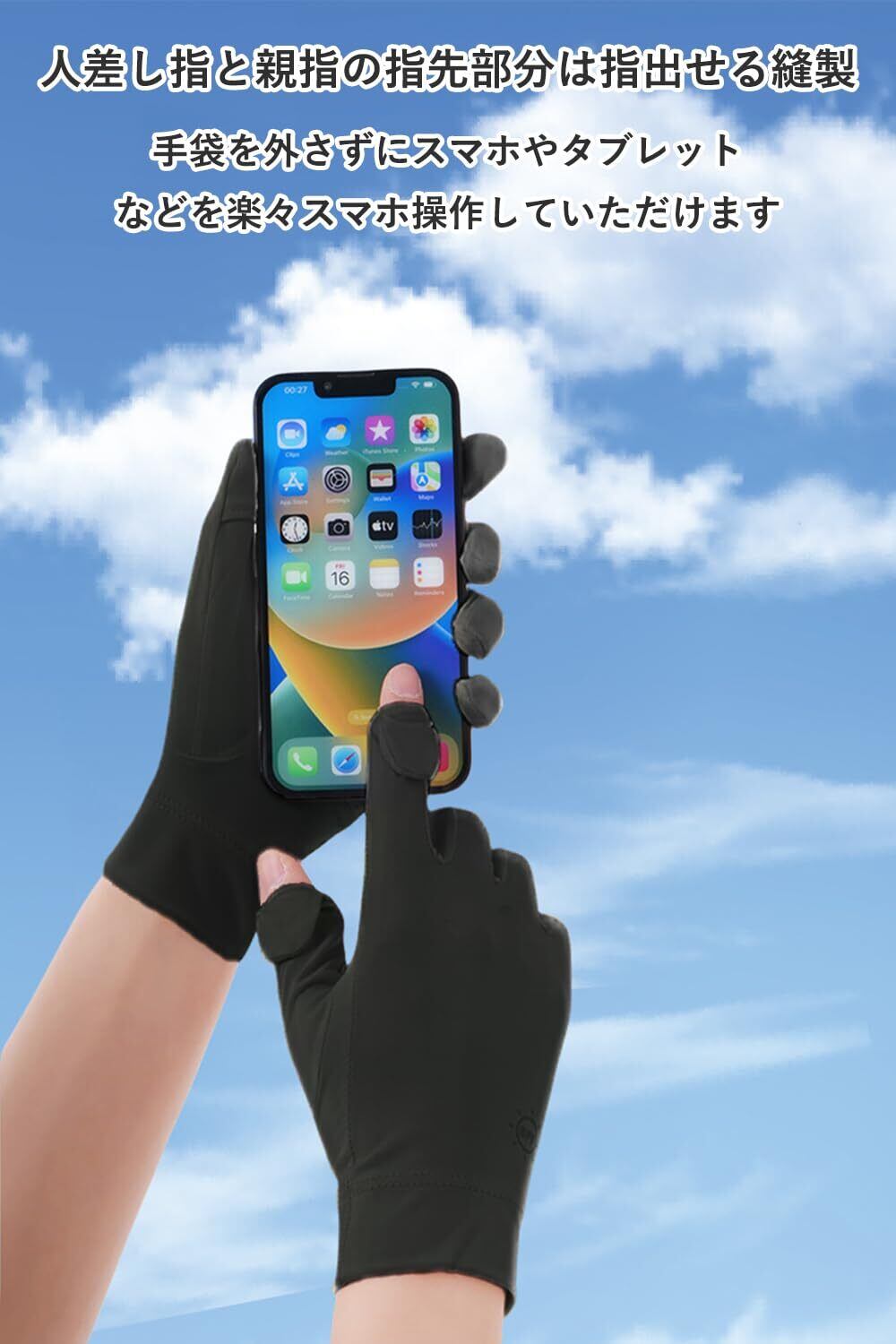 harukita 手袋 日焼け防止手袋 UVカット 夏用 通気 滑り止め レディース 2指出し スマホ操作 自転車 登山 ランニング ブラック