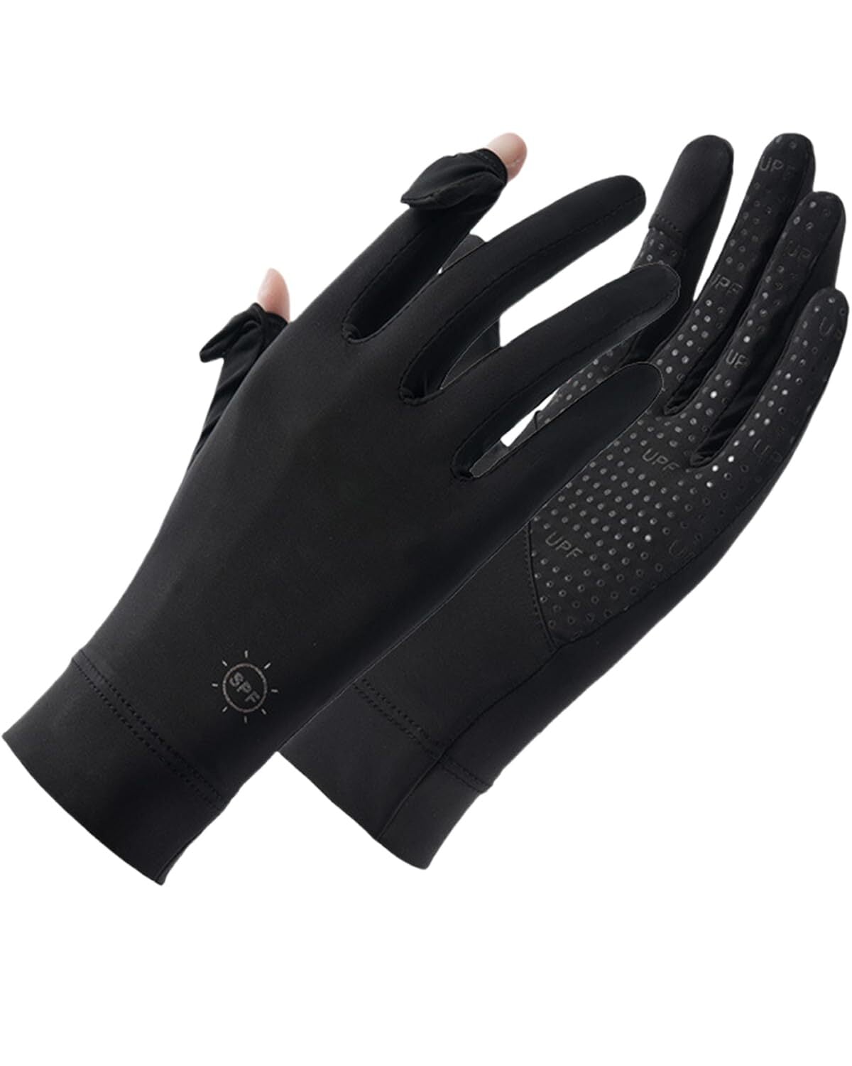 ◆harukita 手袋 日焼け防止手袋 UVカット 夏用 通気 滑り止め レディース 2指出し スマホ操作 自転車 登山 ランニング ブラック◆