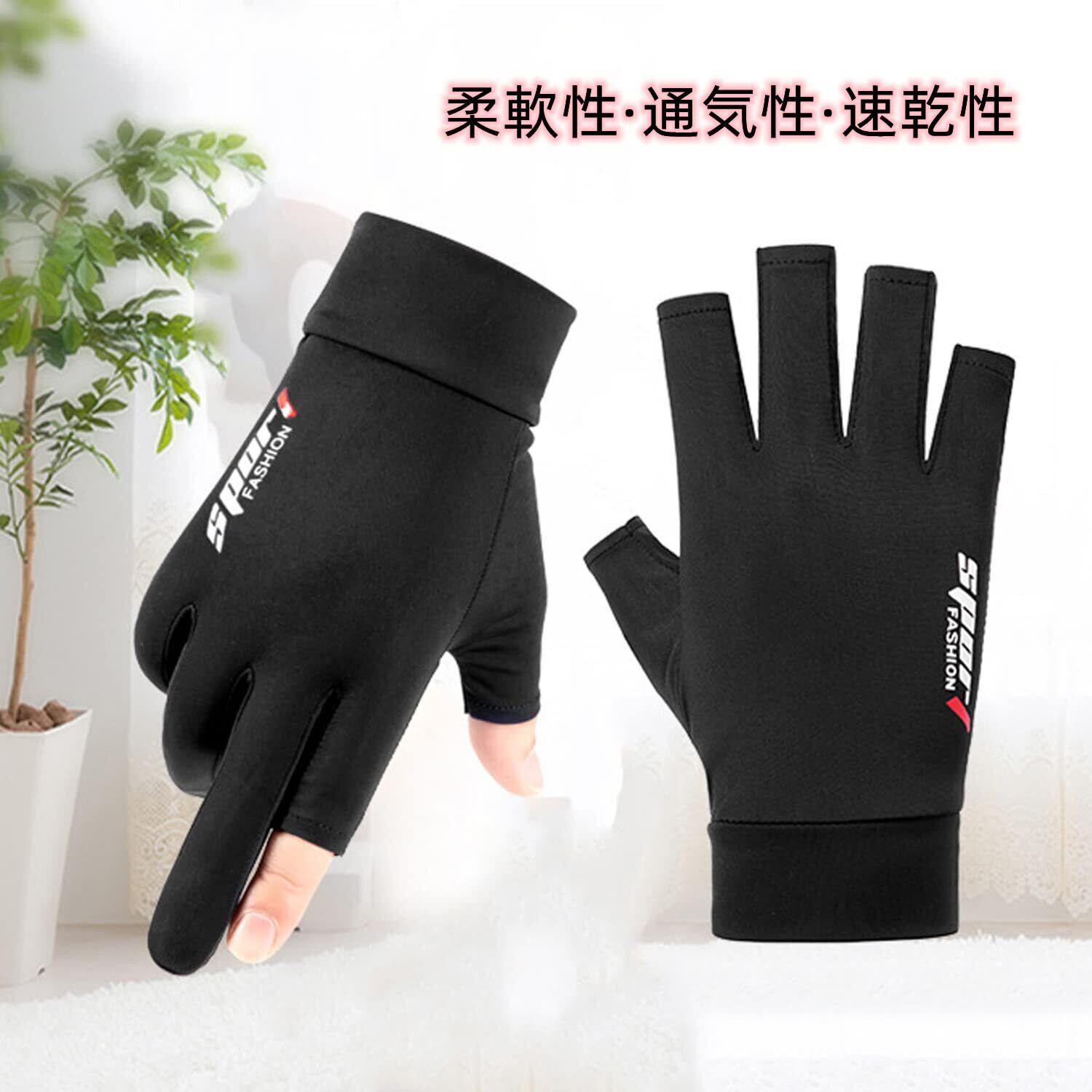 ◆[Hsdvdva] メンズグローブ 春夏用 メンズ 手袋 冷感 日焼け止め 薄型 サイクルグローブ UVカット 滑止め付け スマホ操作 通気性 速乾性 自転車 バイク 釣り 登山 運転用 男女兼用 ブラック◆