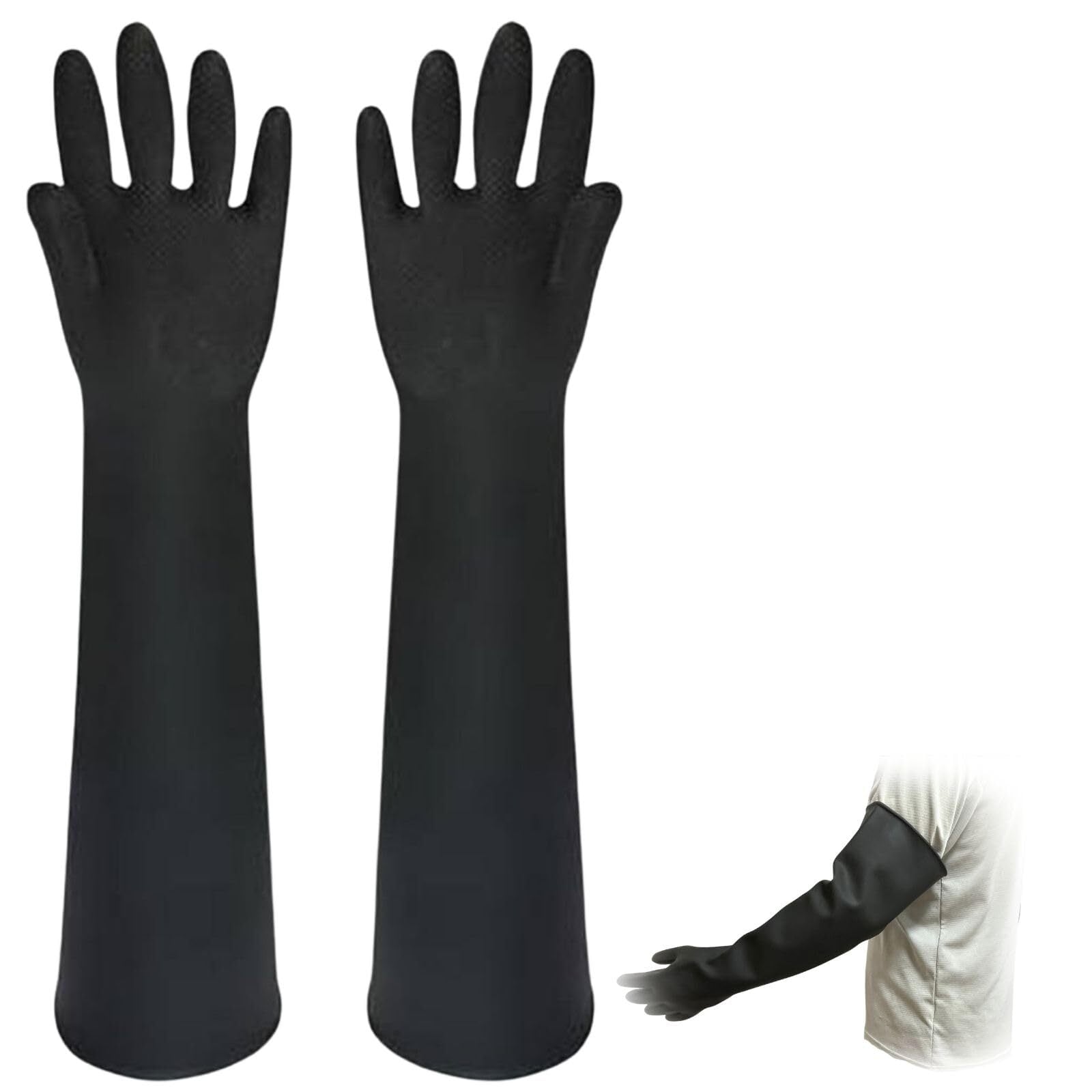 [bath&bath] ゴム手袋 60cm ロング 厚手 サンドブラスト メッキ グローブ 消毒 清掃 作業 (黒)