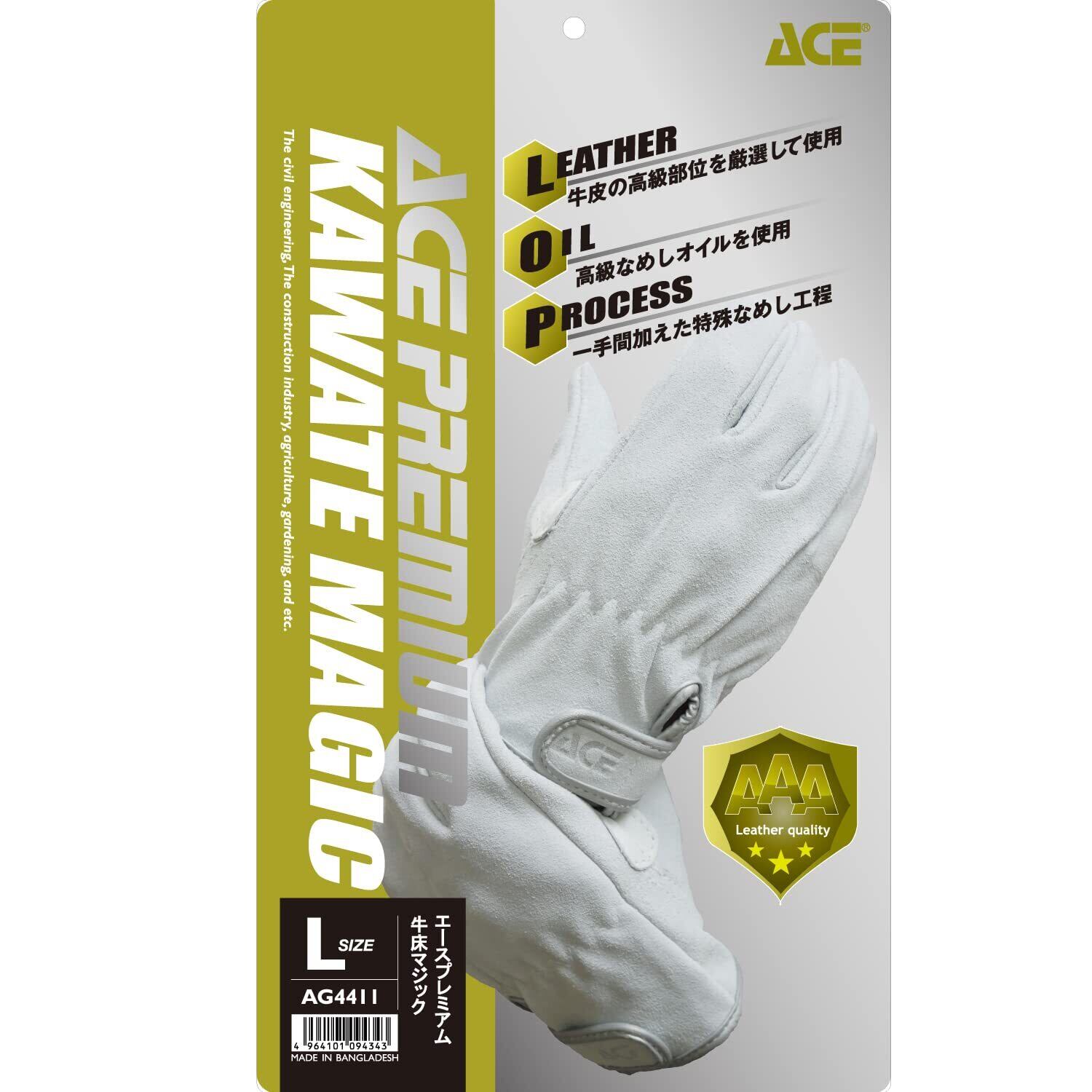 [ACE] 作業手袋 エースプレミアム AAA級 牛床革手袋 Lサイズ AG4411 マジックテープ