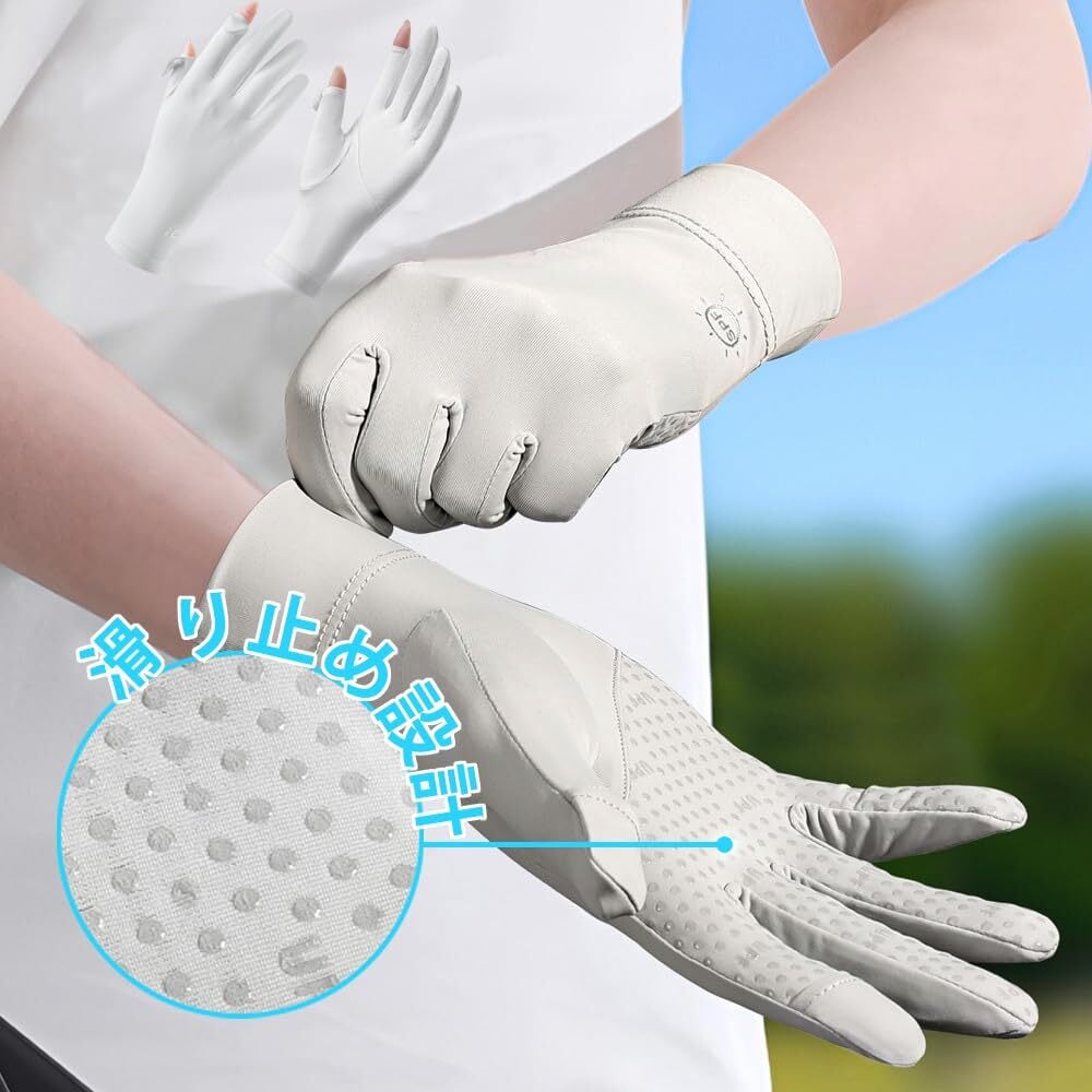 【接触冷感手袋】究極の冷たさを感じる生地を使用し、手袋を着用した瞬間に快適な涼しさを実感できます。通気性に優れ、汗を吸収し、雑菌の繁殖や臭いを抑えます。夏の焼け止めとして最適なUVケア手袋です。