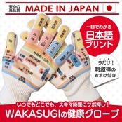 【手のひらから健康をサポートする手ツボグローブ!】日本製のWAKASUGI健康グローブは、手のひらに描かれたツボの絵を活用し、自然な刺激を受けながら心地よいリラックス感を体感できます。男女兼用のフリーサイズで、誰でも手軽にご使用いただけます。簡単な3分間のケアで、気分がスッキリすることでしょう。