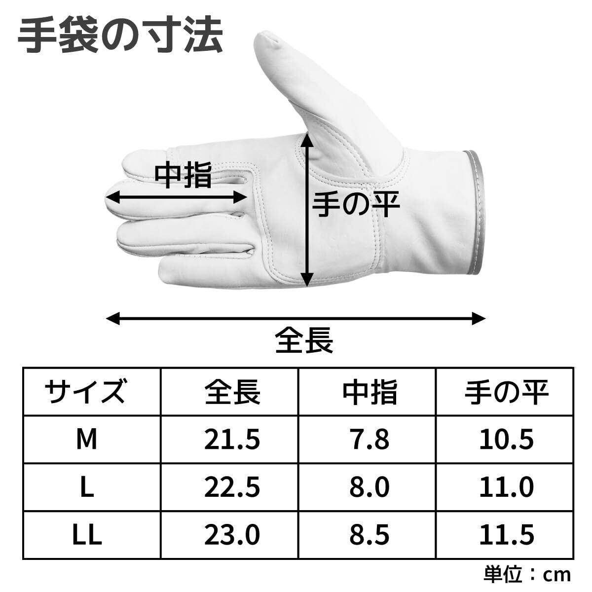 【サイズ】L 全長:約22.5cm 中指長:約8cm 手の平周り:約21cm