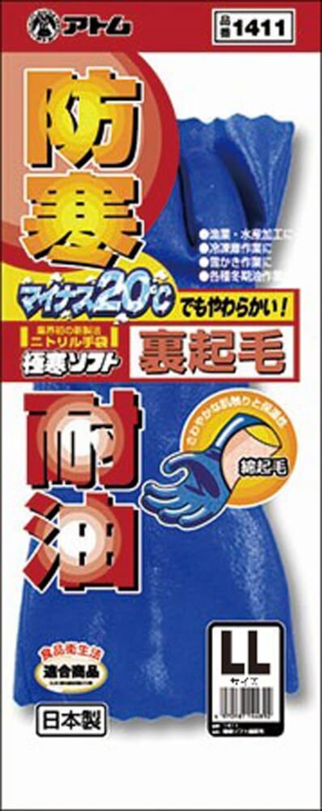 アトム 耐油イーグル極寒ソフト裏起毛手袋 LL #1411 表/ニトリルゴム 裏/純綿(起毛加工) 日本 STBA103
